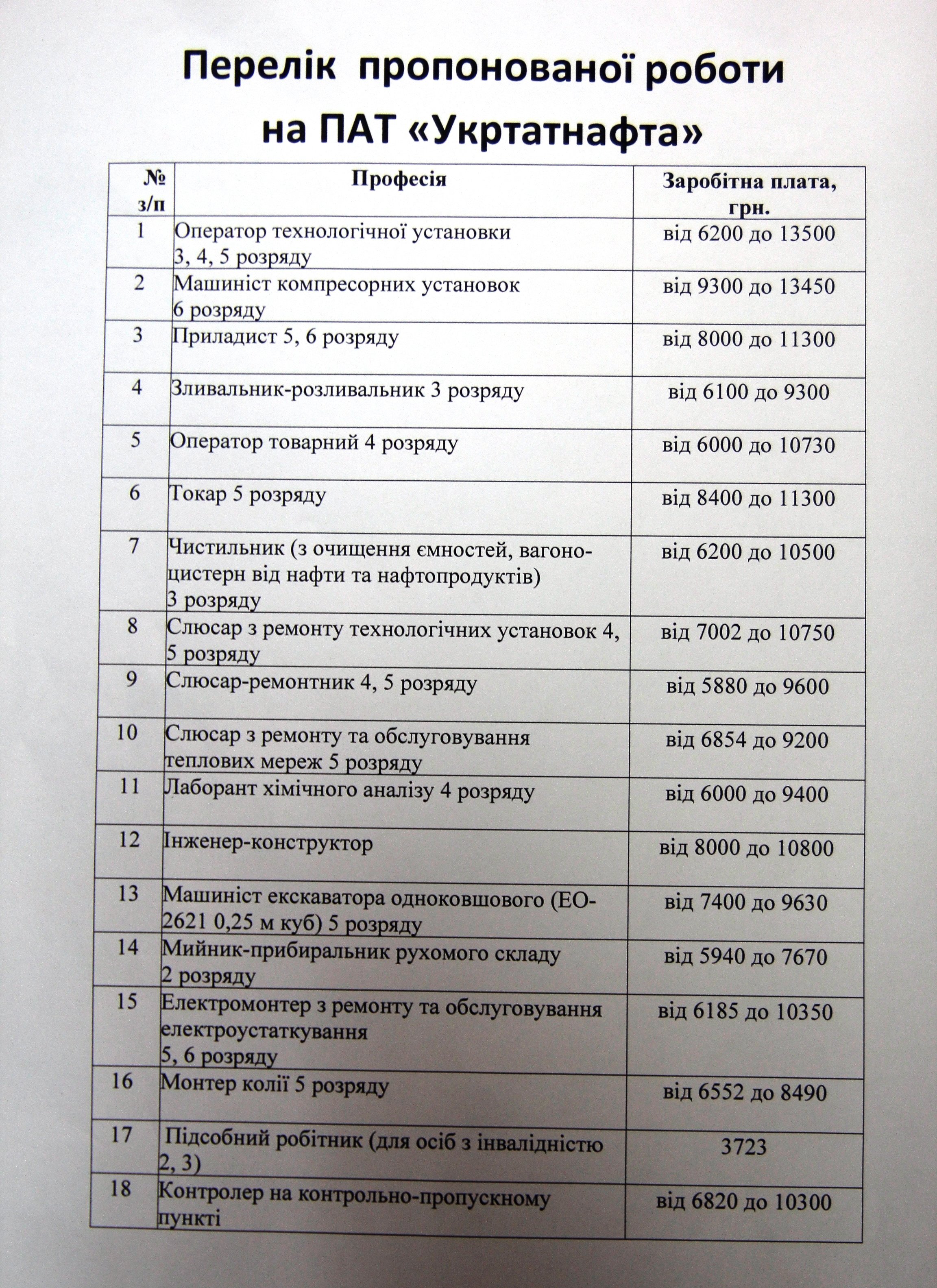 18 вакансій відкрито на ПАТ «Укртатнафта»: зарплата від 3 723 до 13 500.