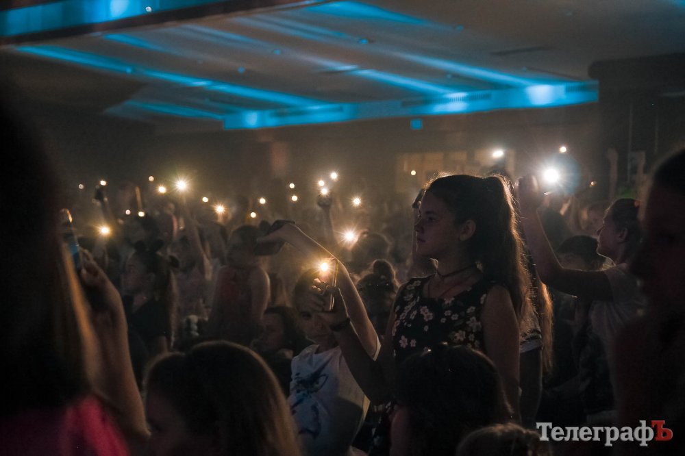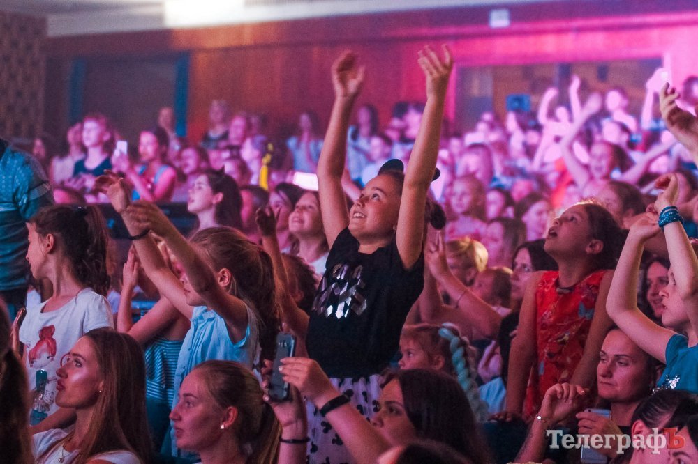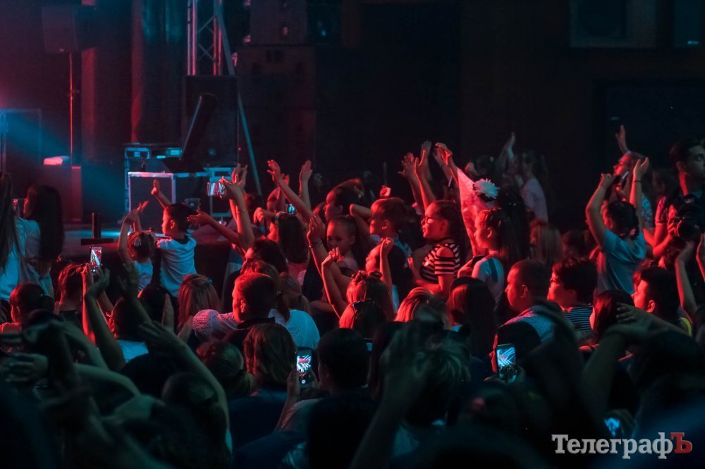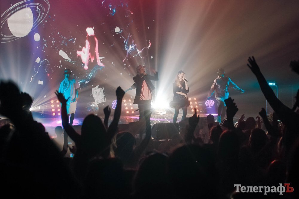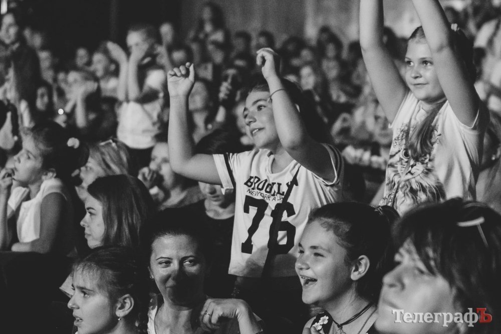 В основном, на концерт пришли подростки и их родители. Дети пищали и кричали «Надя!!!!», «Позитив!!!» еще до выхода звезд на сцену, так что к тому моменту, когда «Время и Стекло» появились публика уже была на взводе. Этот шквал эмоций со стороны кременчужан мог снести кого угодно: зрители танцевали, прыгали, кричали. Благодара «стоячей» фан-зоне концерт сразу же стал похож на настоящуй дискотеку. Правда, школьную :-). Звезды постоянно звали публику подпевать и развлекаться. И дети пели. Юные фанаты знают наизусть все песни До-до и Позитива.