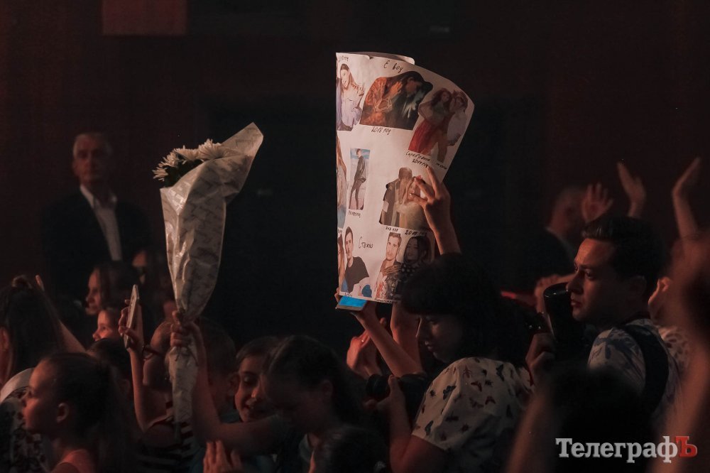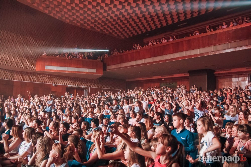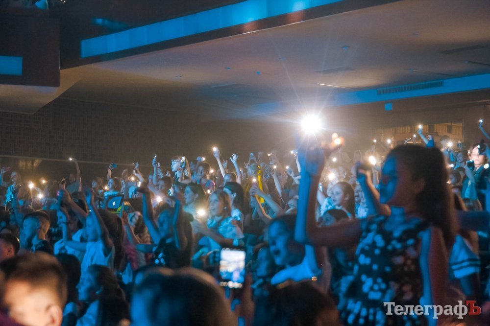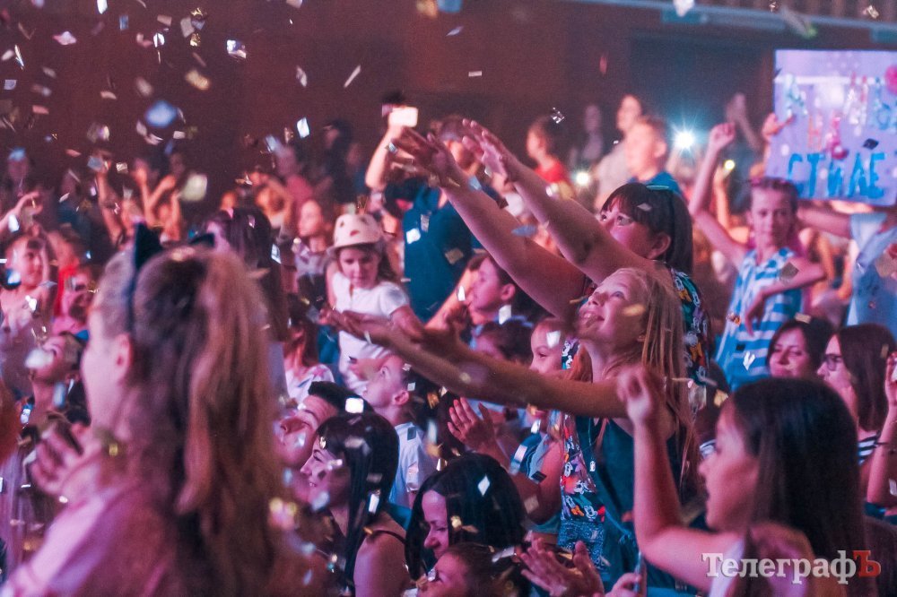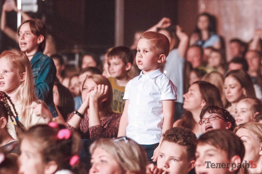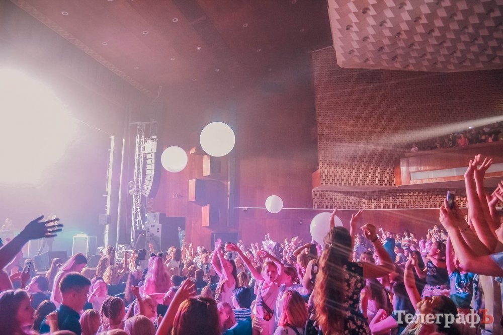 В основном, на концерт пришли подростки и их родители. Дети пищали и кричали «Надя!!!!», «Позитив!!!» еще до выхода звезд на сцену, так что к тому моменту, когда «Время и Стекло» появились публика уже была на взводе. Этот шквал эмоций со стороны кременчужан мог снести кого угодно: зрители танцевали, прыгали, кричали. Благодара «стоячей» фан-зоне концерт сразу же стал похож на настоящуй дискотеку. Правда, школьную :-). Звезды постоянно звали публику подпевать и развлекаться. И дети пели. Юные фанаты знают наизусть все песни До-до и Позитива.