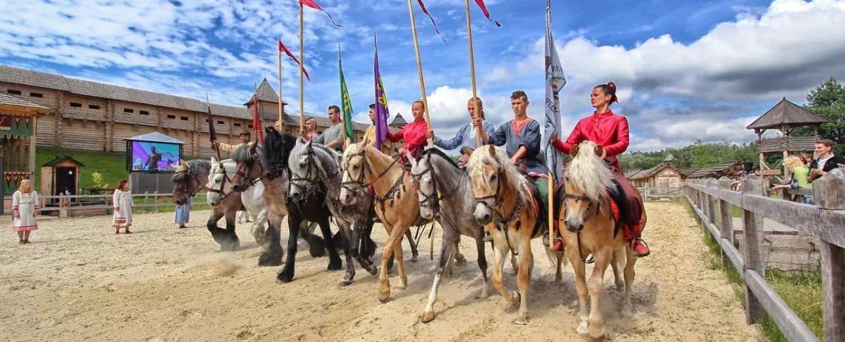 Понятно, что это место – тусовка любителей средневековых костюмов, рыцарских лат и мечей. Всякие фестивали и соревнования в историческом антураже, средневековые баталии, рыцарские бои – это сюда. Также как показы этно-моды, огненные шоу, шоу конных каскадеров, концерты средневековой и этномузыки, театрализованные представления, хореографические и музыкальные действа и тому подобное. Есть «княжеская конюшня», где собрано более 30 различных пород. Здесь и арабские скакуны, и донцы – любимые лошади казаков, и лошади ковбоев, и орловские рысаки, и ковбойские квотерхорсы.