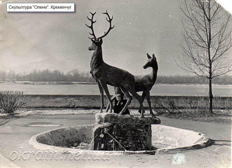 Скульптура оленів у «Придніпровському парку» була в середині 50-х років минулого століття. На фотографіях 1953 року вже є скульптурна група «Олені».