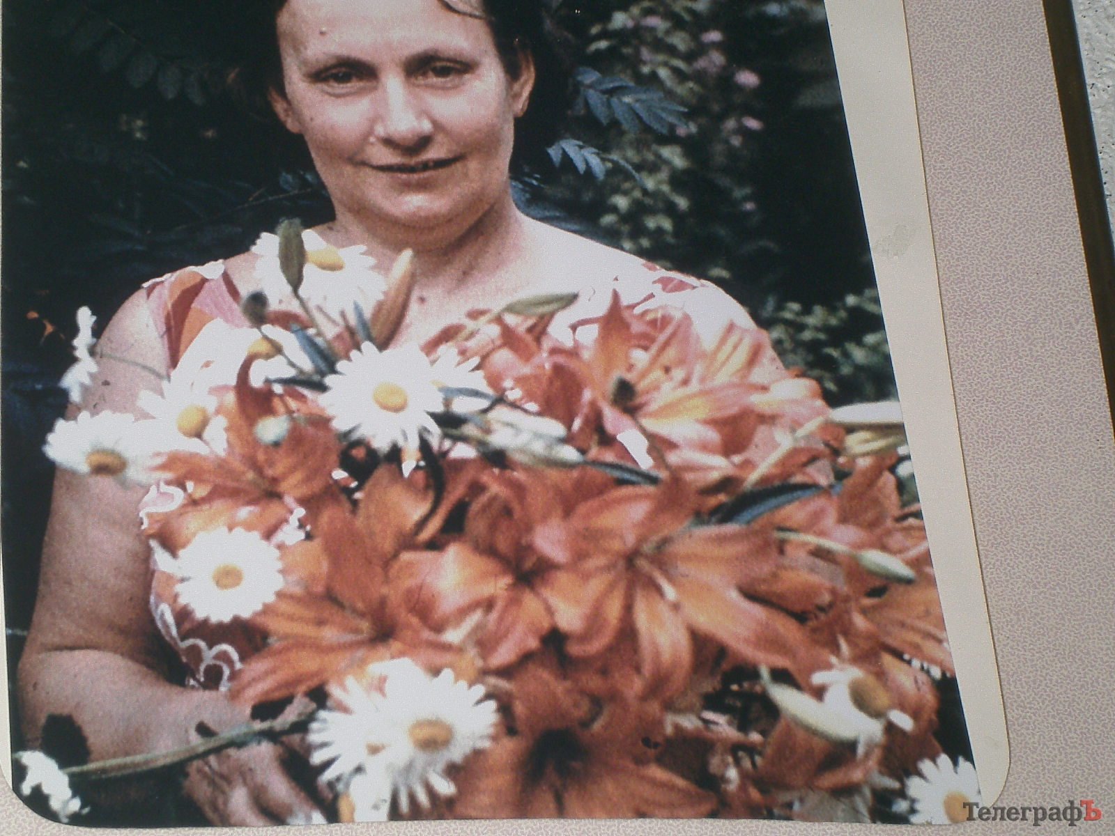 Галина Гугнина во дворе дома на Соборной (Ленина) в Кременчуге, где они жили. Роскошные лилии, которые она держит в руках, Галина Григорьевна вместе с соседями выращивала в палисаднике у подъезда.