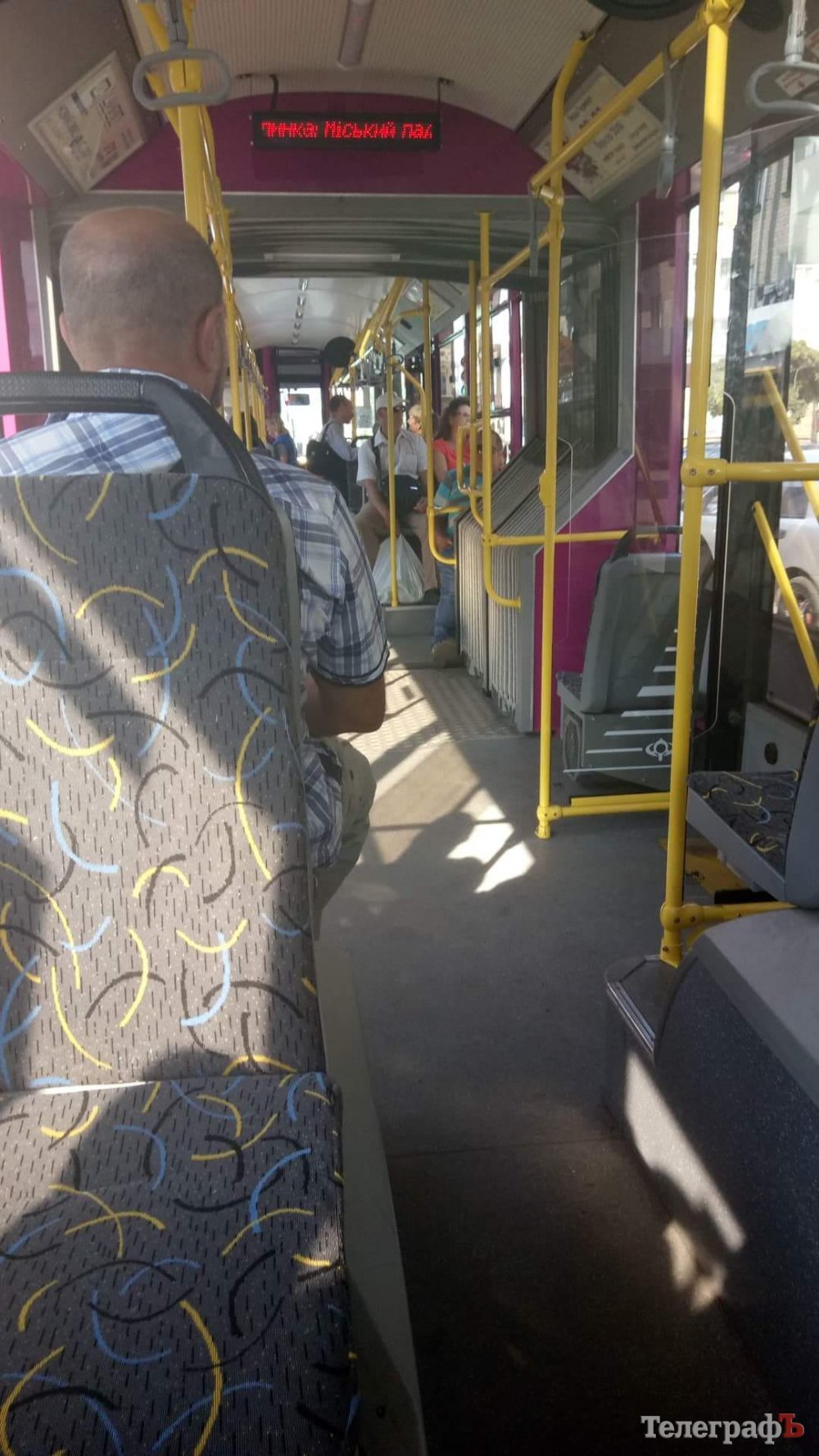 Самый большой разрыв во времени показал фиолетовый (не новый «гранатовый») троллейбус с маршруткой, выдвинувшийся около трех часов дня: 13 минут. Но в остальных случаях, в вечернее время разница между поездкой гранатовым троллейбусом или маршруткой оказалась всего 7 минут! И 3 грн. Но в троллейбусе, где от солнца не прячут шторки и не спасают кондиционеры, каждая минута – вечность. Адская сауна. Спрятаться можно только в троллейбусной гармошке. На солнечных местах никто не сидит. Можно придерживаться троллейбусного дресс-кода, как бабушки: брать с собой веер – вентилятор и персональную занавеску в «одном флаконе». Еще отдельно мы раз протестили маршрут 3б. Старенький троллейбус мучил нас 32 минуты на отрезке от «Героев Украины» до ул. «Троицкой». А спринтер справился за 20 мин. Разница – 12 минут. Приводим впечатления журналистов «Тъ», переписывающихся онлайн во время поездочек общественным транспортом.