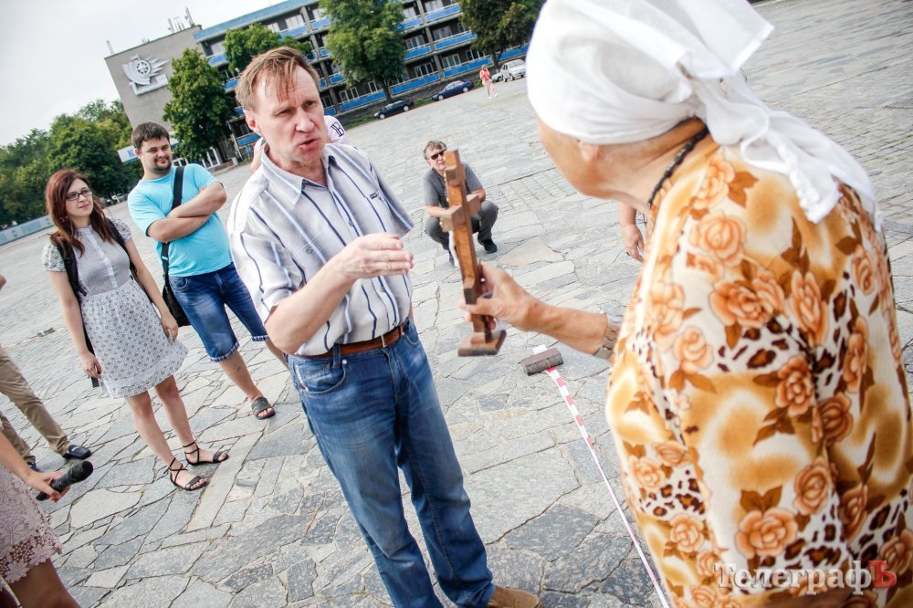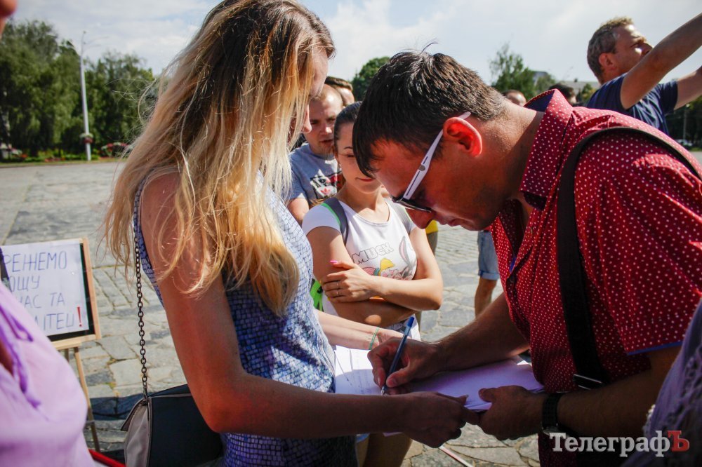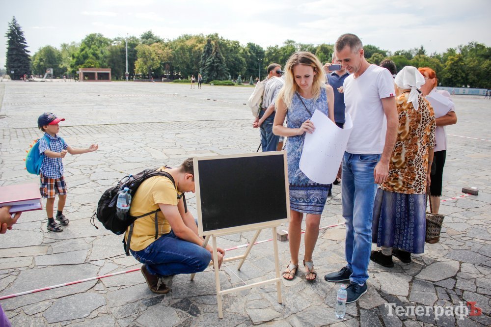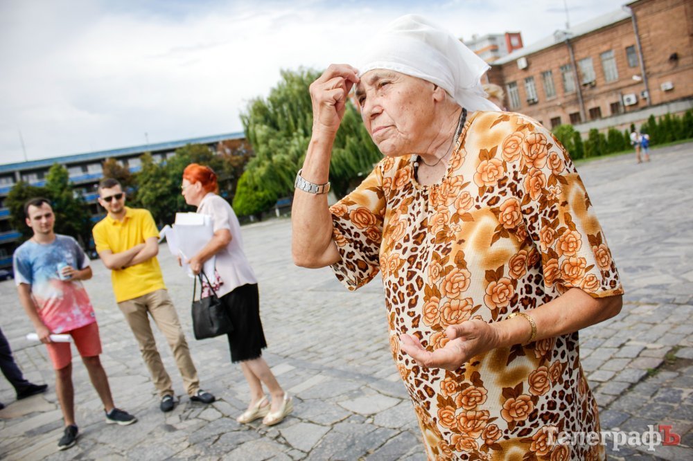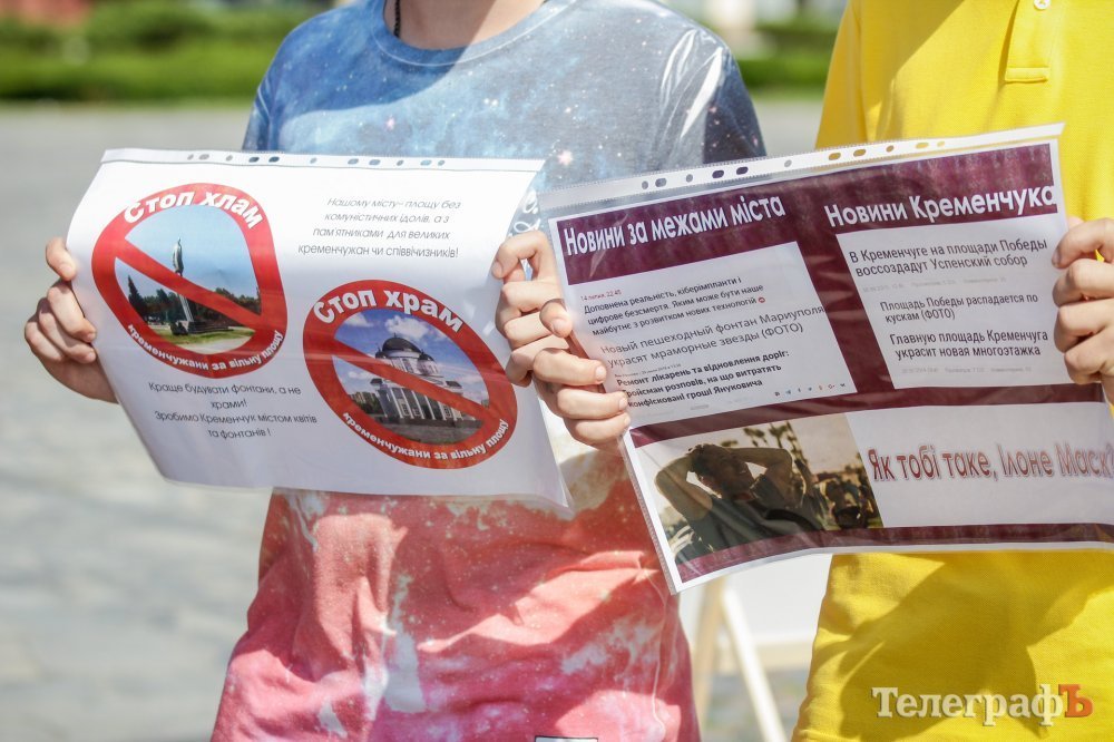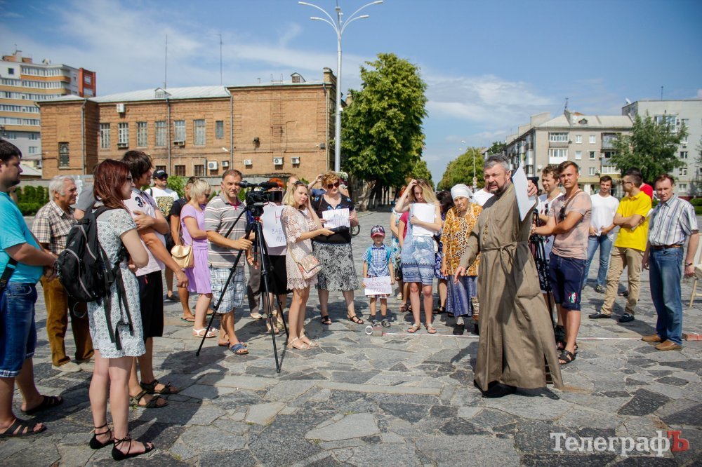 Вечером 22 июля на площади Победы собрались кременчужане, которые выступают против строительства Успенского собора в центре площади. Они утверждают, что выступают не против собора, а против застройки площади вообще – она им нужна без строений.