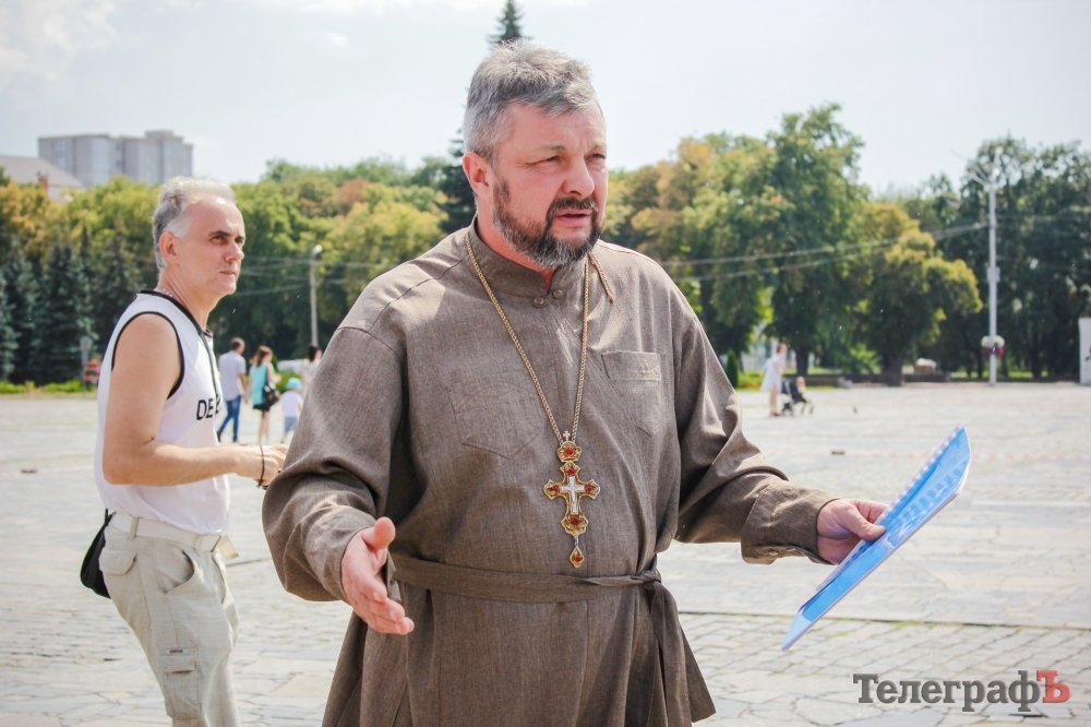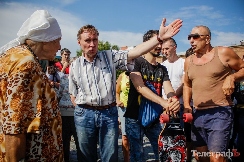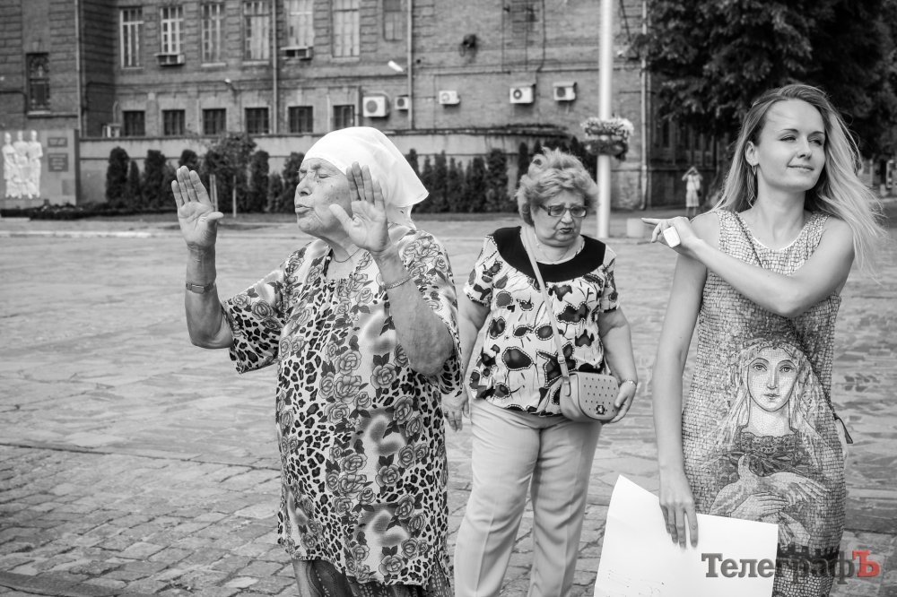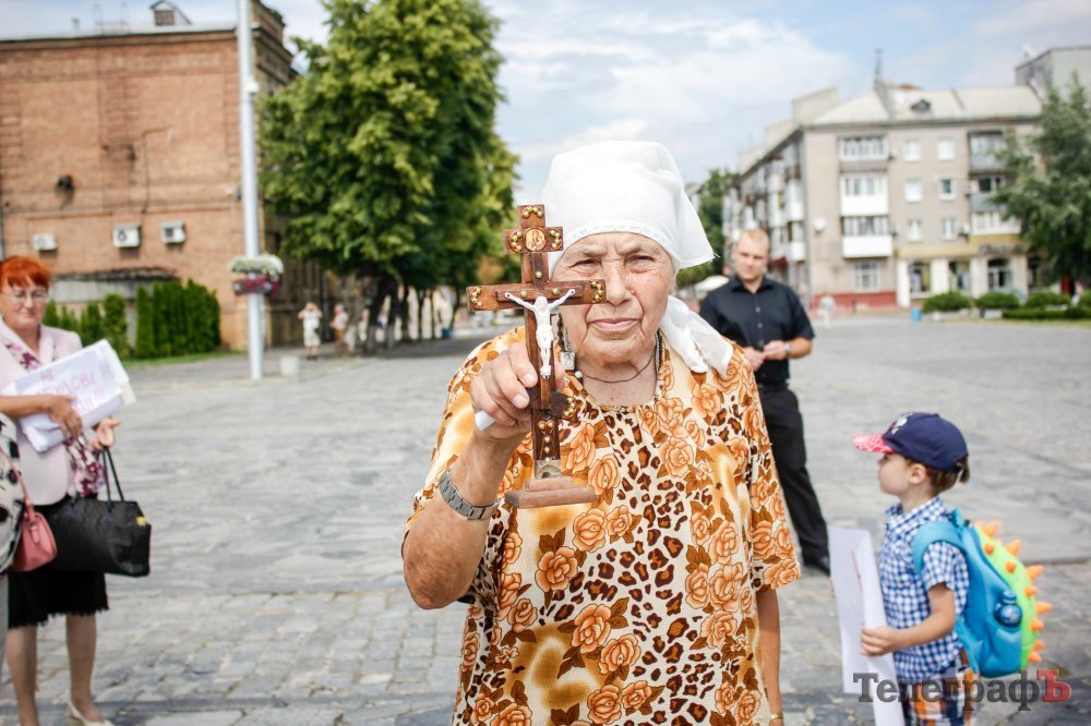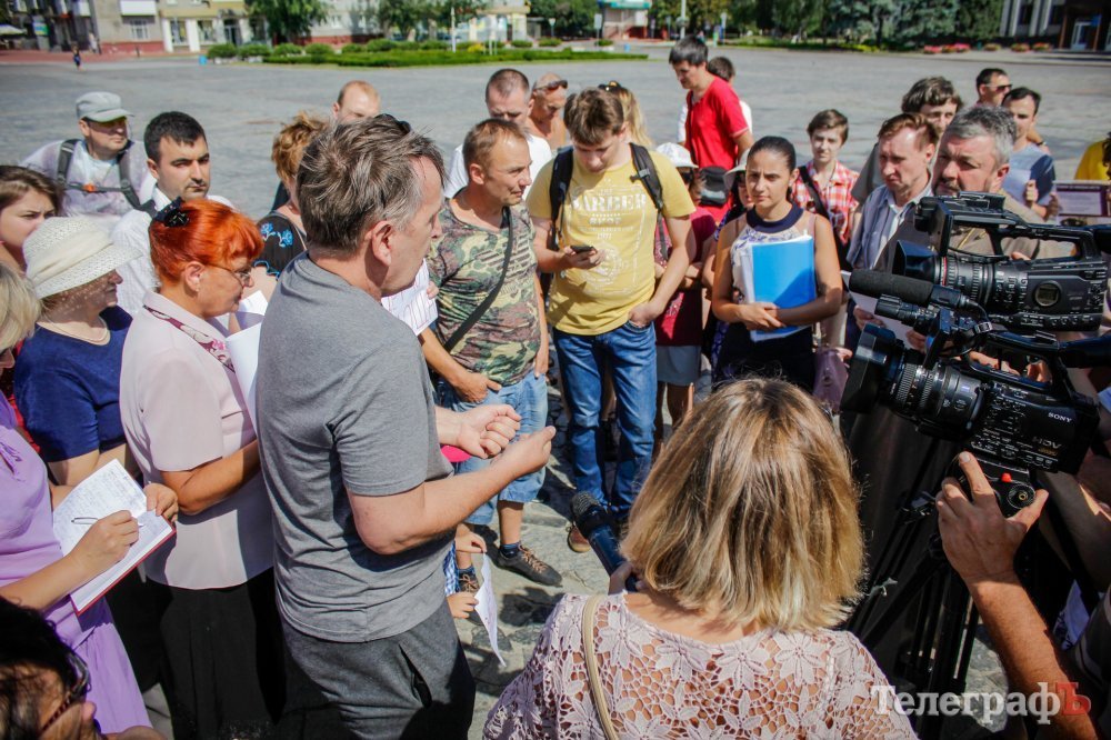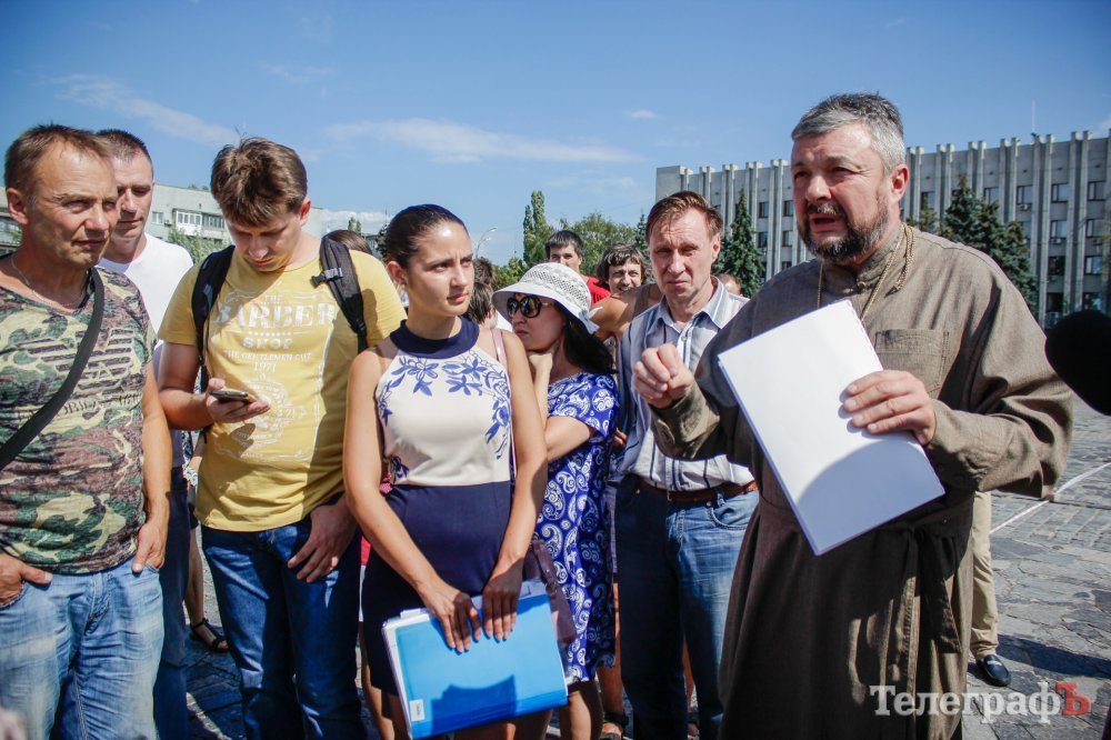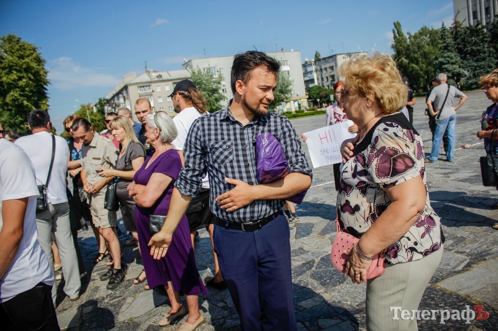 Вечером 22 июля на площади Победы собрались кременчужане, которые выступают против строительства Успенского собора в центре площади. Они утверждают, что выступают не против собора, а против застройки площади вообще – она им нужна без строений.