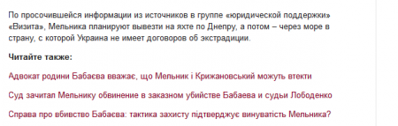 В частности, 25-го июля, за сутки до сегодняшнего дня памяти Олега Бабаева, на сайте, где публикуются исключительно хвалебные материалы о деятельности нардепа Шаповалова и мэра Малецкого, появился материал «Готовится побег Мельника?» Его анонимный автор написал: