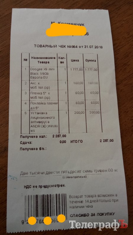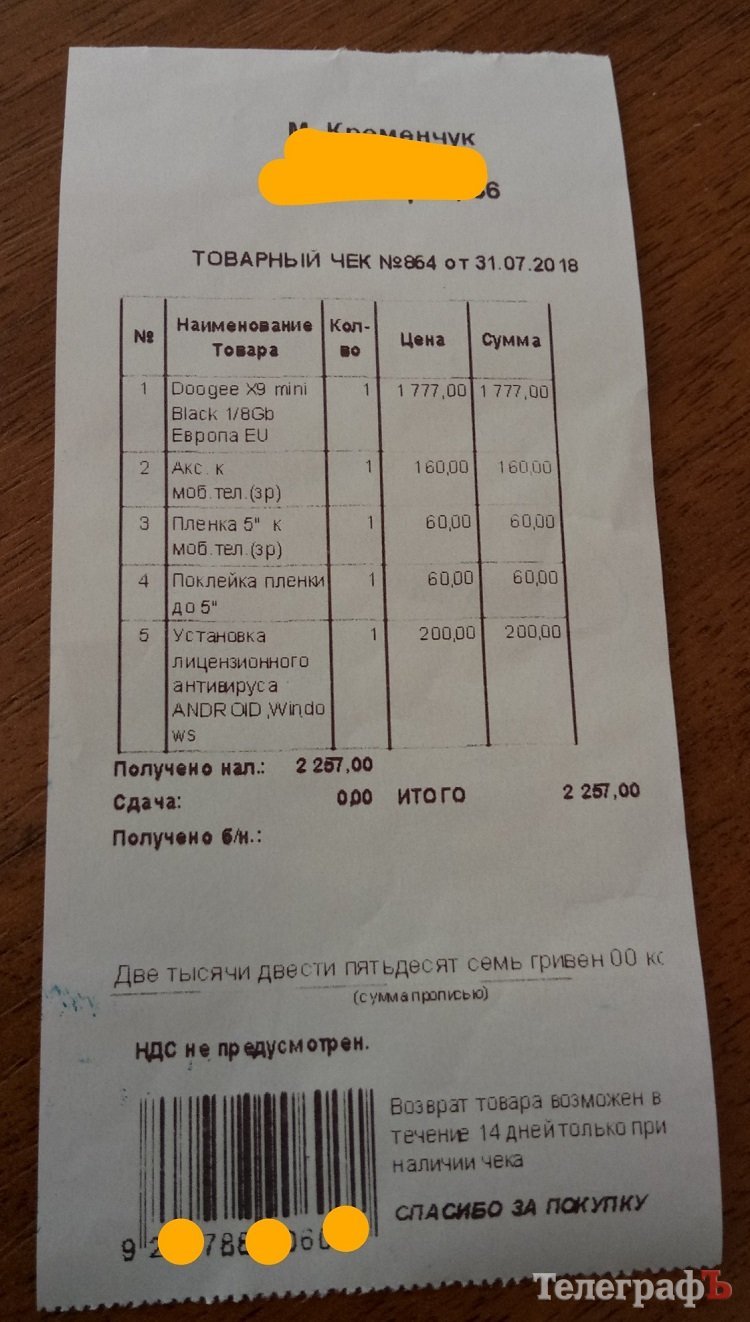 Эту историю рассказал нам наш читатель, пенсионер. Ему на день рождения презентовали деньги для покупки нового смартфона. После «сёрфинга» в Интернете, мужчина выбрал подходящую ему модель по цене около 1,7 тыс грн. Для покупки он выбрал один из небольших магазинов в центре города. Цена в 1777 грн его устроила.