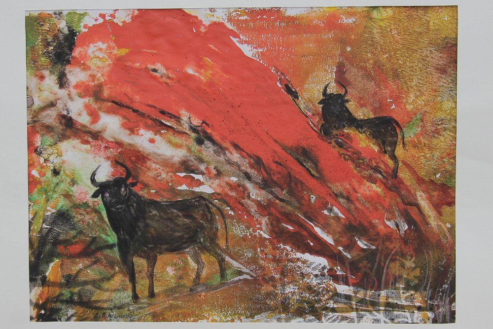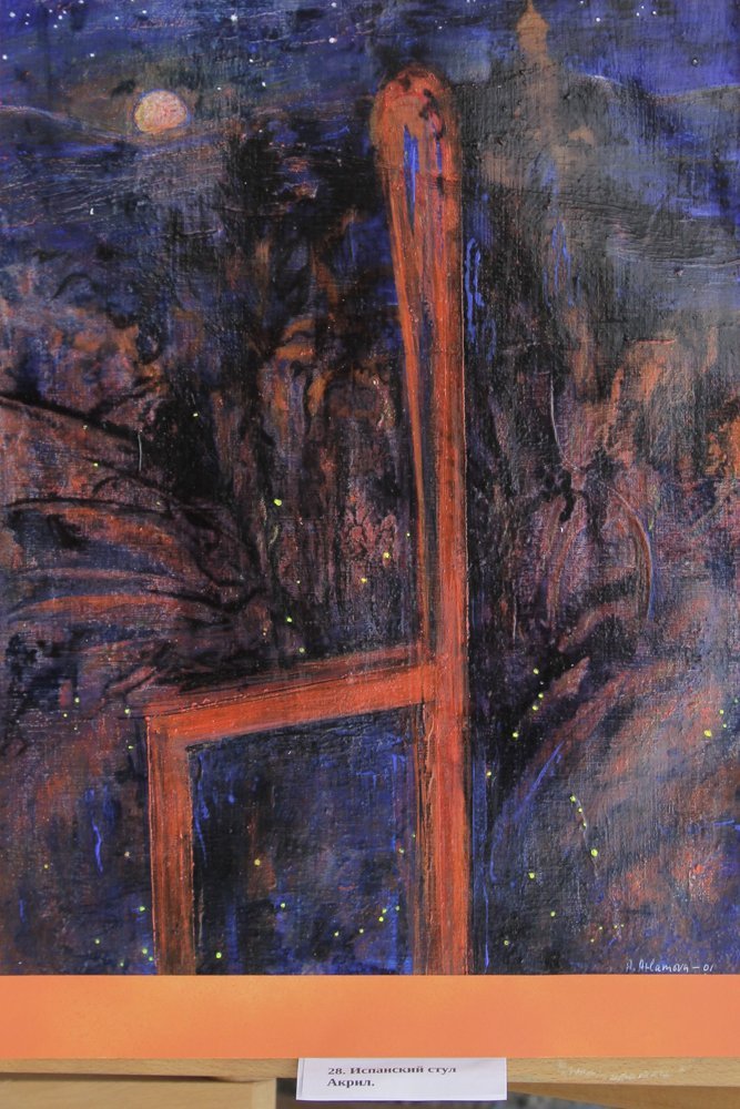 В серії картин є ціла Іспанія: силуети прямокутних будиночків, величних костелів, схоплені мелодією – нотною графікою; палкі пурпурові спалахи кориди з темними силуетами розлючених биків, рельєфна й ефемерна синя птаха пролітає по нашій свідомості, білі крила голубки та шляхетні постаті червоних коней… «Іспанський стілець» пропонує втомленому подорожньому зупинити на мить свій хід і погляд на нічному небі, де розтоплений місяць згорає від любові. Анна подарувала галереї цю картину – свій перший погляд на Іспанію. Це сталося 2001 року: будиночок з обсерваторією на верхівці гори, безмежний небосхил і грайливі світлячки, що на мить завмерли на картоні…