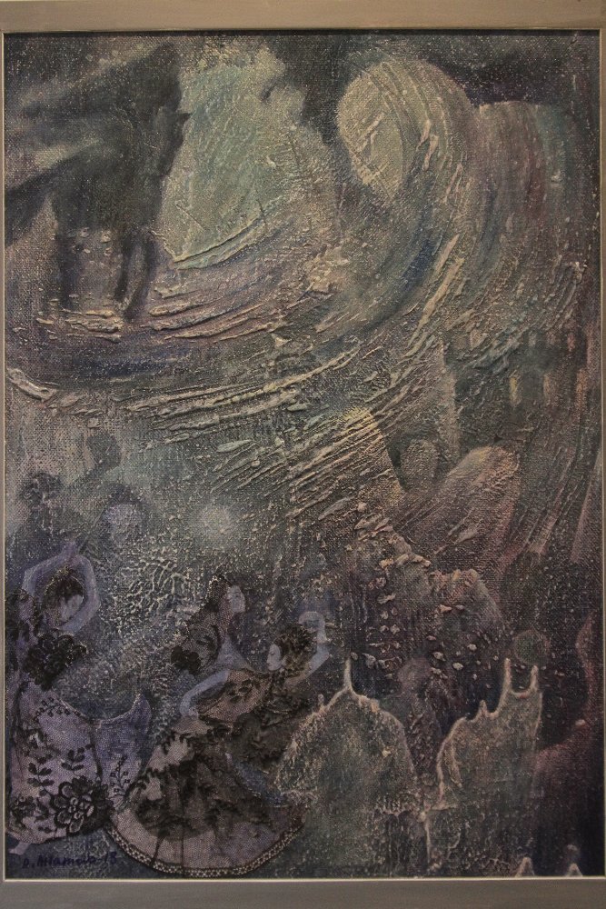 Ритми іспанської гітари вчуваються у варіаціях на тему «Фламенко»; «Недозволена пристрасть» приворожує чуттєвістю, палке кохання розтоплює серце ніжними переливами кольорів. Перші акорди місячної серенади зачаровують у гравюрі «Починається плач гітари». Крізь мереживо дивовижних сплетінь нас зупиняє глибокий терновий погляд Гарсія Лорки – його сумна радість бути поетом закарбувалась у творі «Мій улюблений Лорка». Ласкаві хвилі лоскочуть тіло мушлі – це «Море сміється біля краю лагуни».