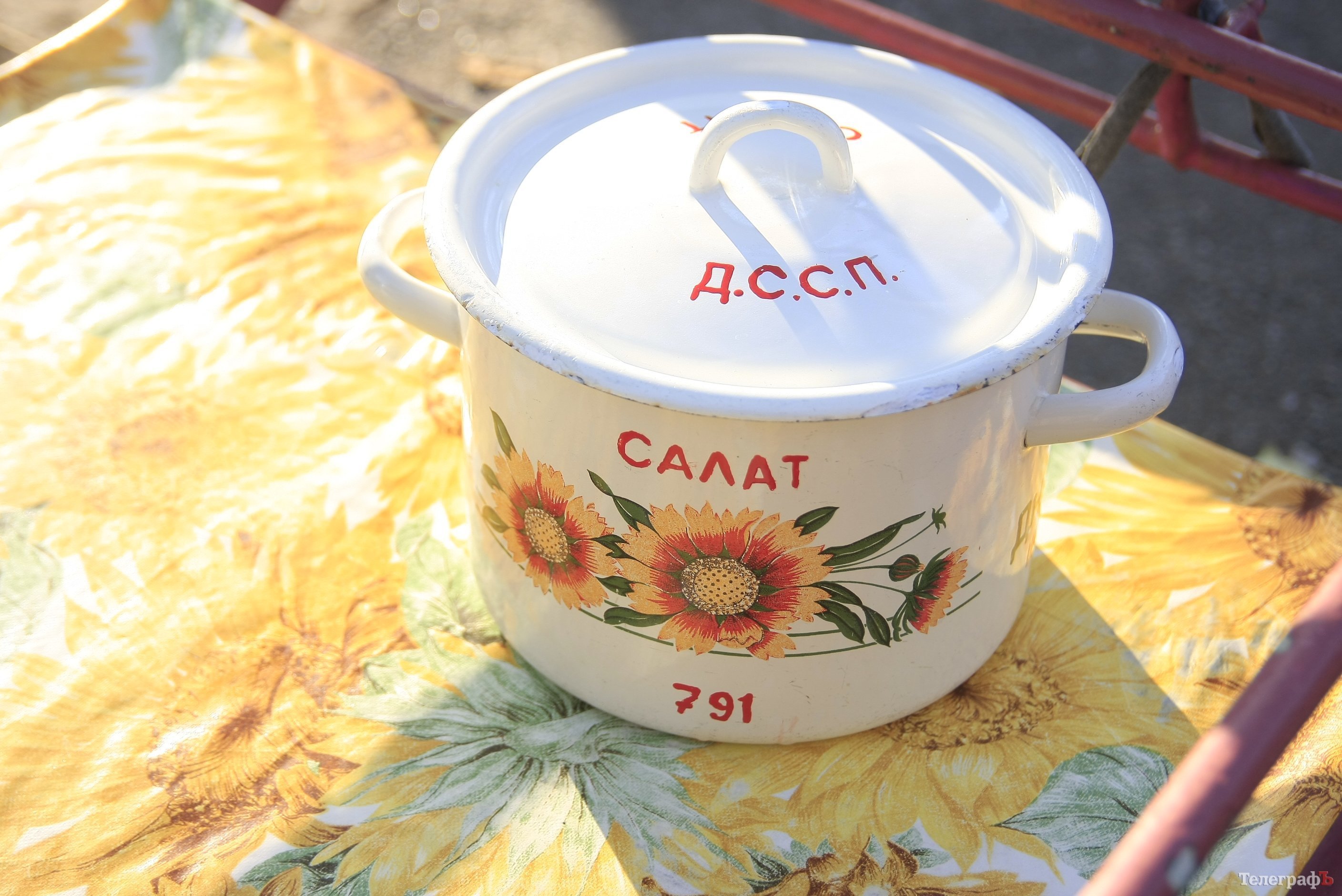 Также мы обратили внимание на свежеподкрашенные эмалированные кастрюли – они, может, и не первой молодости, но в местах сколов их заботливо подкрасили белой краской.