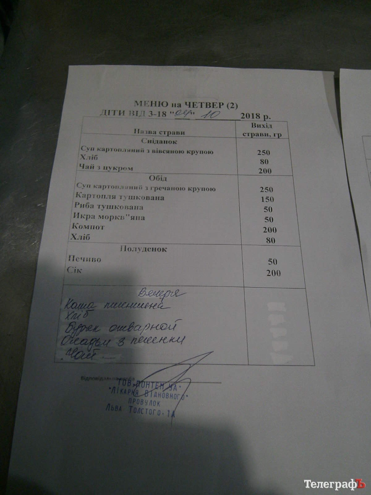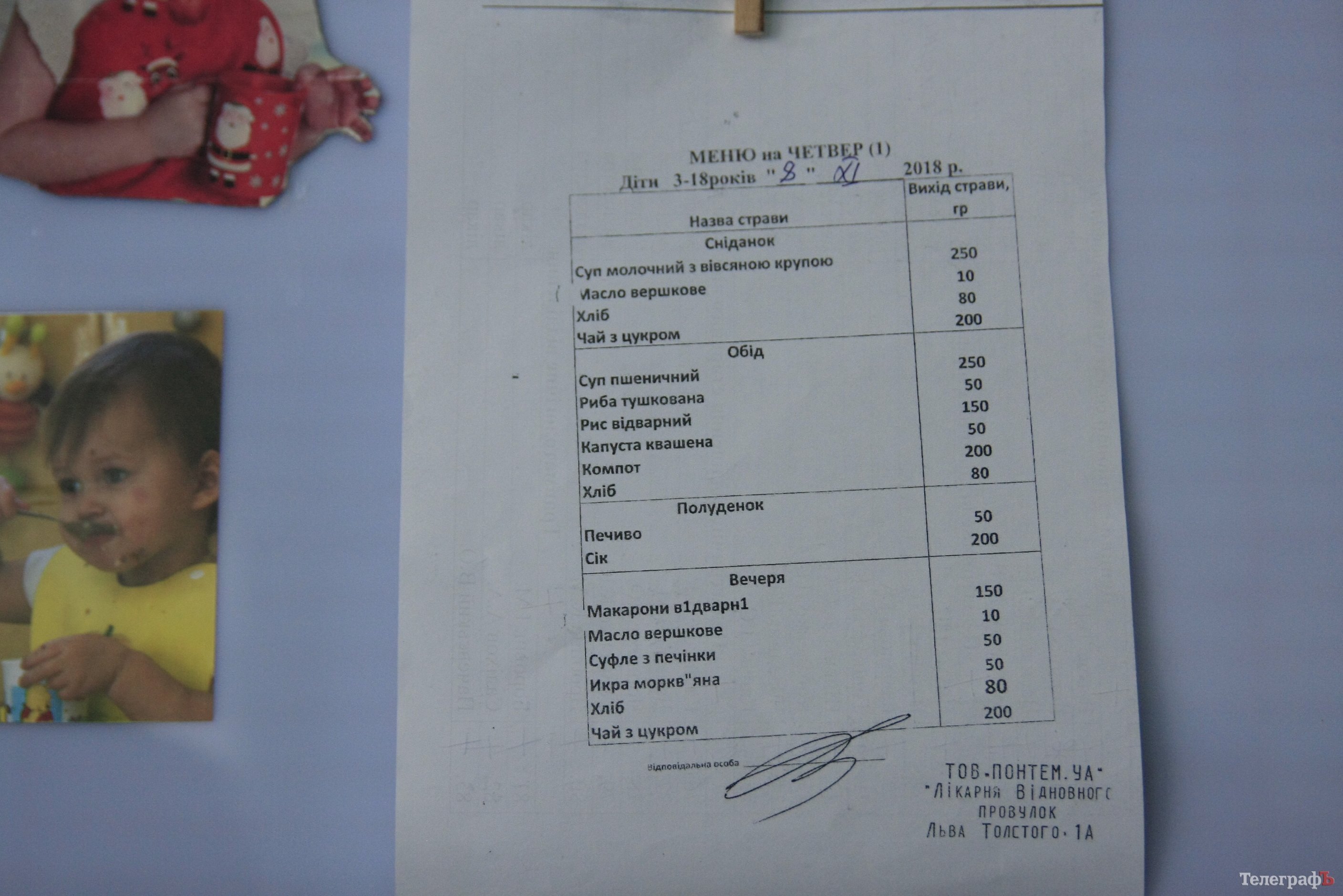 Специально для депутата Терещенко «Телеграф» сообщает – есть польза от работы такой группы, и от проверок, о которых уведомлены заранее все главврачи. Потому что сегодня, 8-го ноября, в день проверки, дети 3-18 лет получили по 20 грамм масла! 10 на завтрак и 10 на ужин.