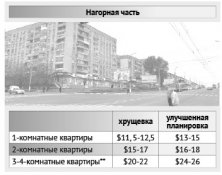 Новостройки-гиганты. Максимальная цена на однокомнатку, которую мы увидели – 46 тыс. долларов. Но по размеру она как 2-3 комнатная хрущевка: 42 кв.м. Зато с автономным отоплением и евроремонтом. Новостройки сразу выделяются ценой и площадью. Однокомнатка может быть 60 км.в. с кухней 24 км. м. Стоить такое добро будет около 30 тыс. Можно ставить станки и устраивать школу танцев, если соседи этажом ниже не будут против. Часто встречаются объявления о сдаче таких квартир с «полным фаршем»: сантехника, мебель, бытовая техника - заходи и живи. И всегда с индивидуальным отоплением. В общем, в новострое вы часто найдете кухни под 20 кв.м и площади 50-70 кв.м. Для сравнения, в хрущевке 2-комнатка всего 45 кв.м, а кухонька – 6 кв.м. Так что и цены на новые «однушки» выше, чем цена 2-3- комнатного совка.