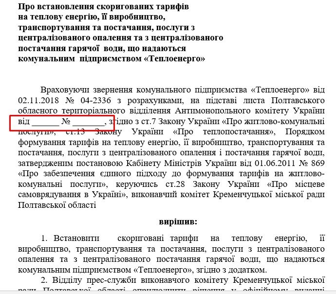 Мэрия Кременчуга спешит повысить тарифы на отопление и горячую воду для жителей правобережья и Занасыпи, которых отапливает коммунальное предприятие «Теплоэнерго». Так, 8 ноября на сайте горсовета опубликованы два проекта решения: