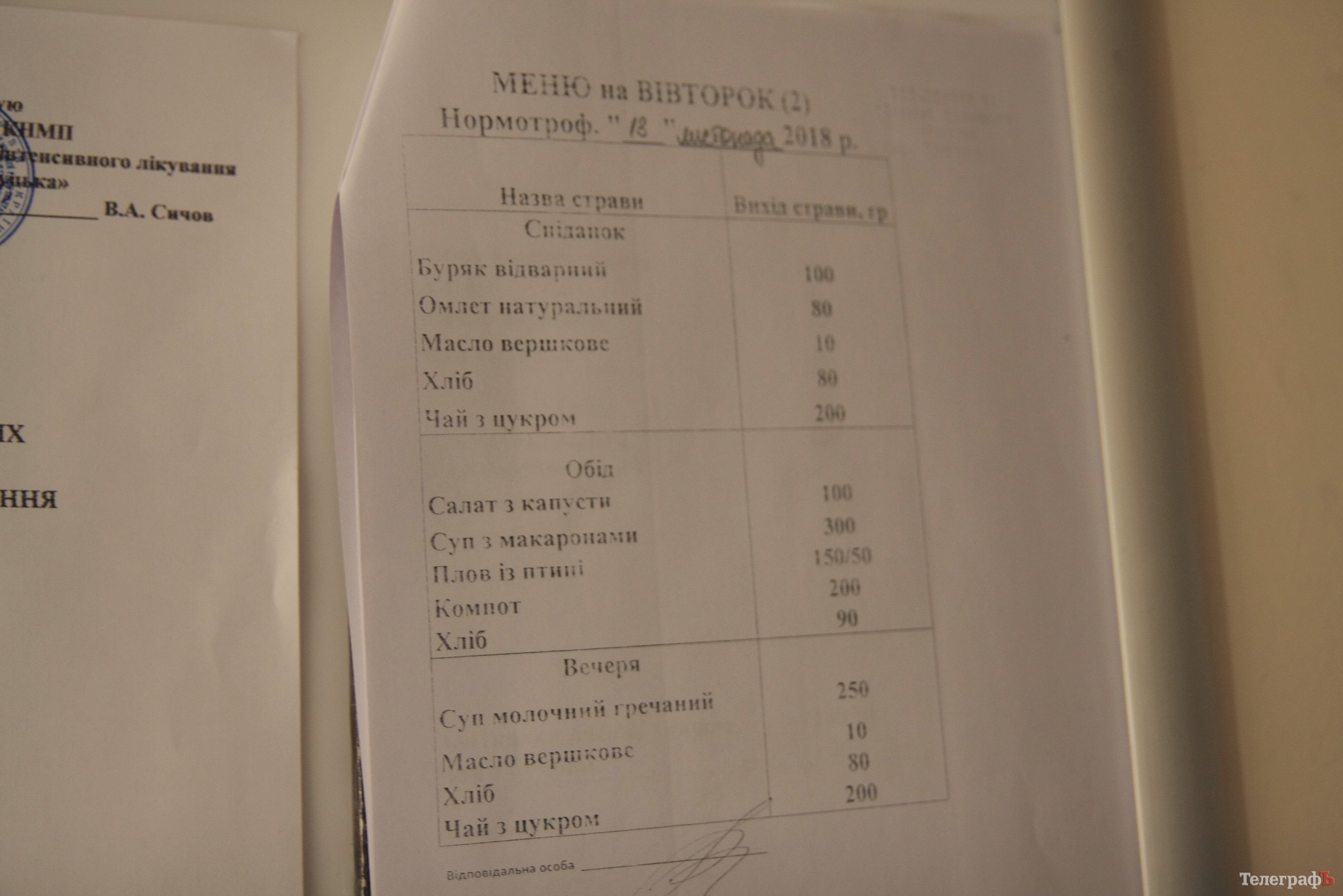 13-го ноября рабочая группа во главе с вице-мэром Ольгой Усановой проверила организацию питания в больнице «Кременчугской» (бывшая третья больница). Руководитель горздрава Максим Середа отметил, что в больничных отделениях мало посуды для приема пищи. А журналисты заподозрили, что 300-граммовая порция супа, вполне вероятно, весит на самом деле 250 грамм.