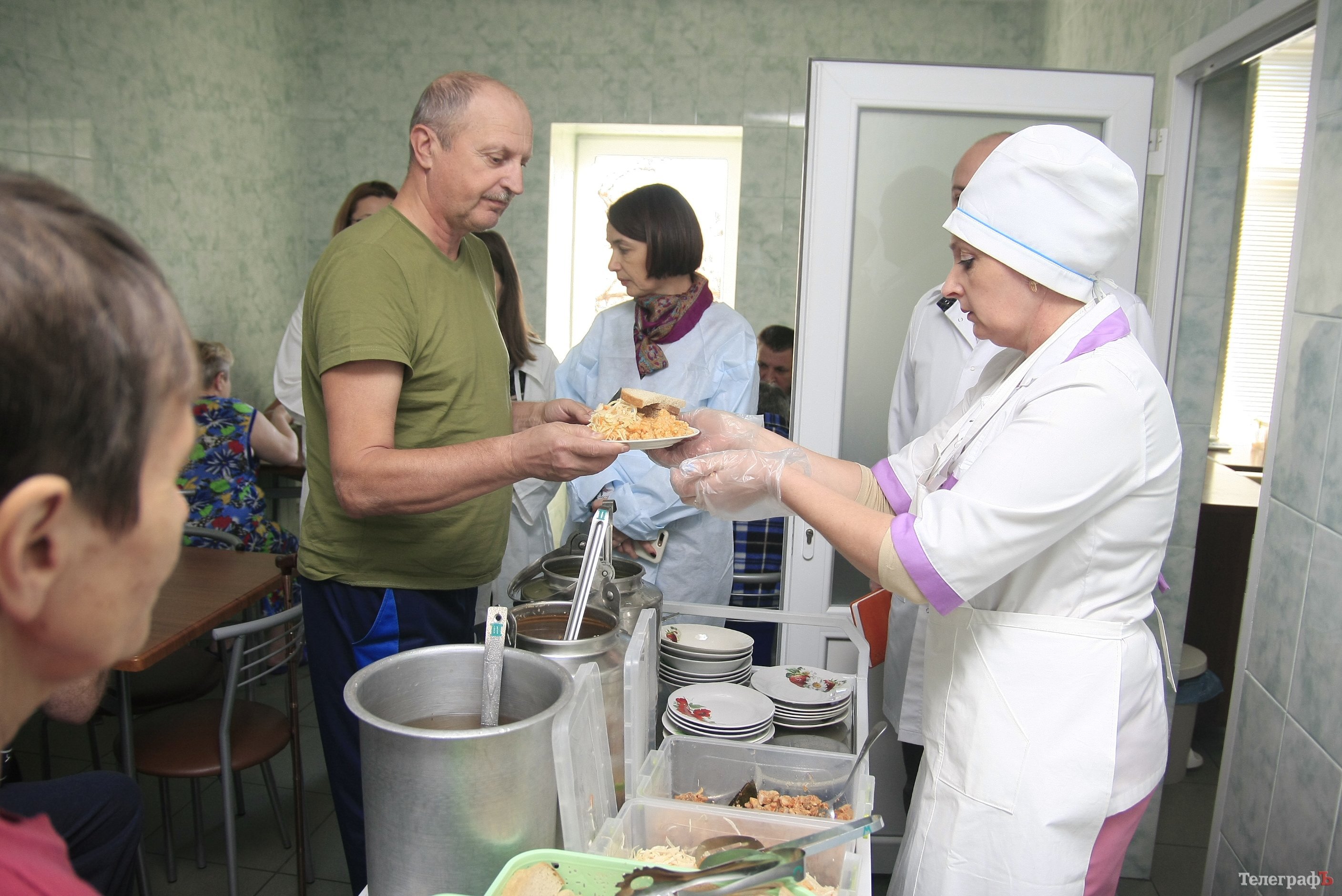 В отделениях «Кременчугской» больницы обустроены столовые для приема пищи. Столовые, которые посетила рабочая группа – в хирургии и в кардиологии – очень тесные. Там стоят несколько столов для пациентов, тут же находится раздаточный стол, где накладывают порции. Член рабочей группы депутат Коркишко высказал пожелание, чтобы помещения столовых были просторней.