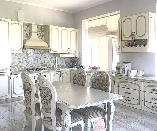 Двухэтажный дом в районе Петровки. С камином авторской работы и использованием итальянского мрамора. Со швейцарской сантехникой, паркетной доской, сауной и барбекю авторской работы. Есть даже летние фонтанчики и зимний сад!