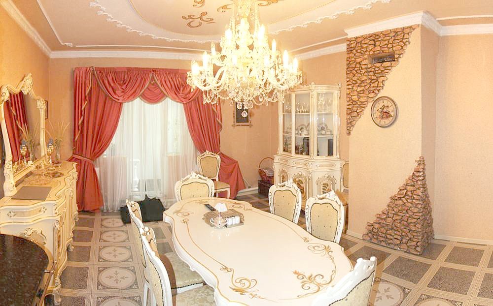 Двухэтажный коттедж в центре города с 10-ю комнатами. Строили как для себя – из чистых экологических материалов, но продают в связи с переездом. Коттедж в классическом стиле, имеет тренажёрный зал, бильярдную, шикарно обставленные комнаты с элитной мебелью и розовыми кожаными диванчиками и цветущий двор.