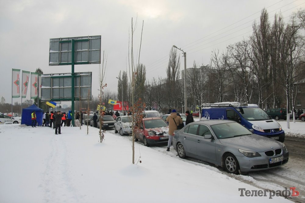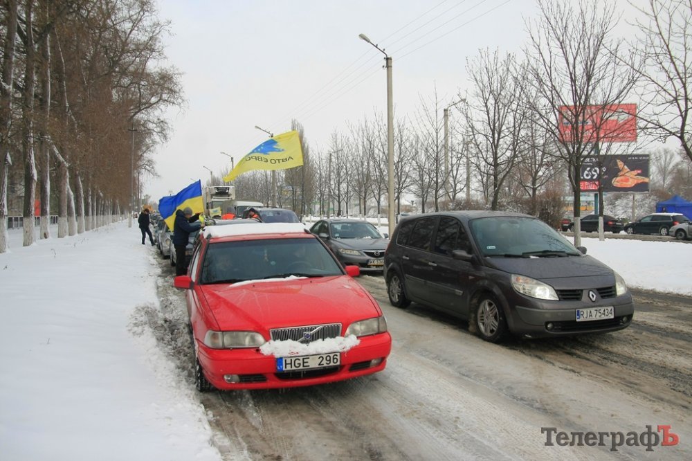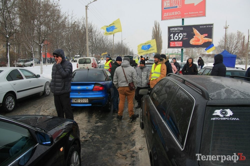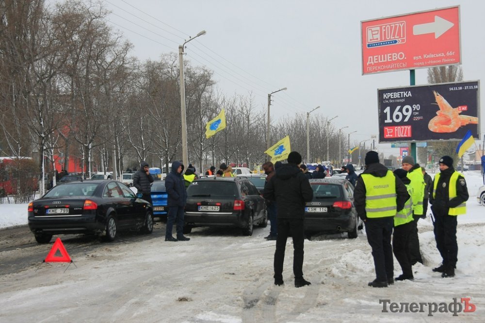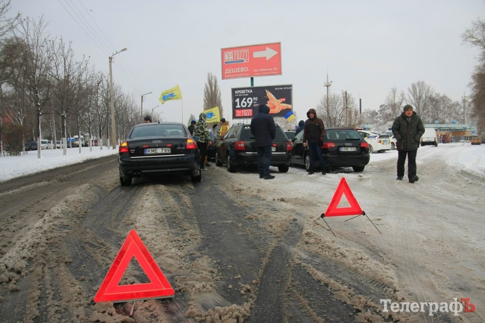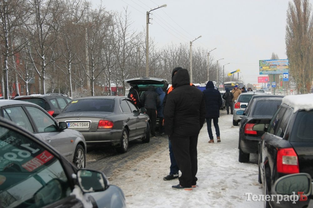 С 10.00 в Кременчуге затруднено движение по ул. Киевской – бастуют владельцы «евроблях». Перекрыт участок от ул. 40-летия ГАИ до поворота на Новую линию в обе стороны. Первая полоса перекрыта полностью. во второй тоже стоят машины, третья – пустая.