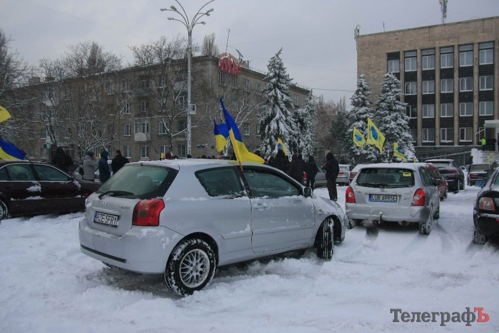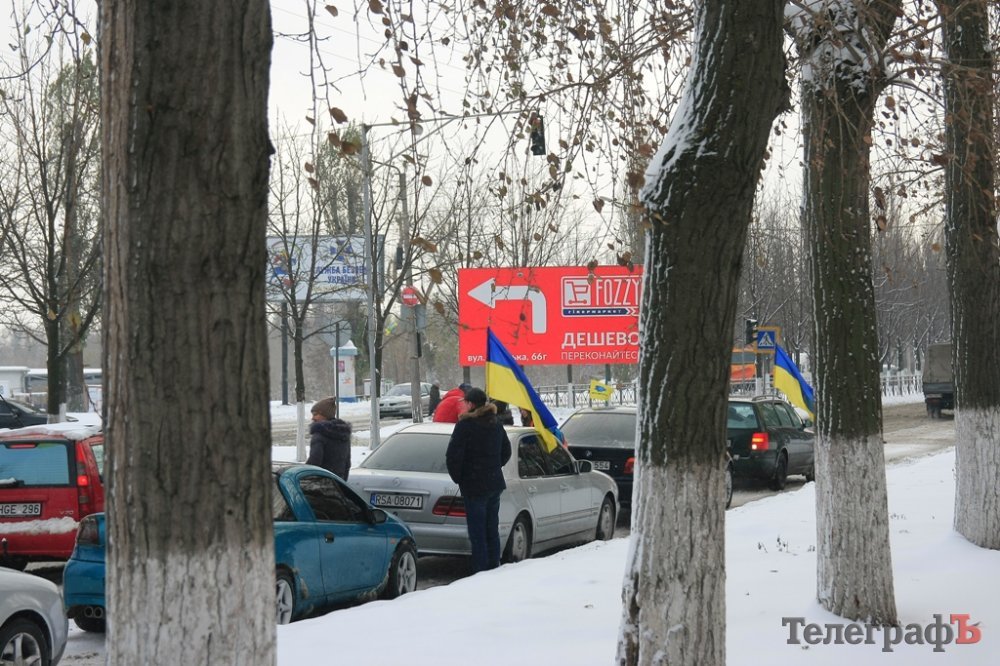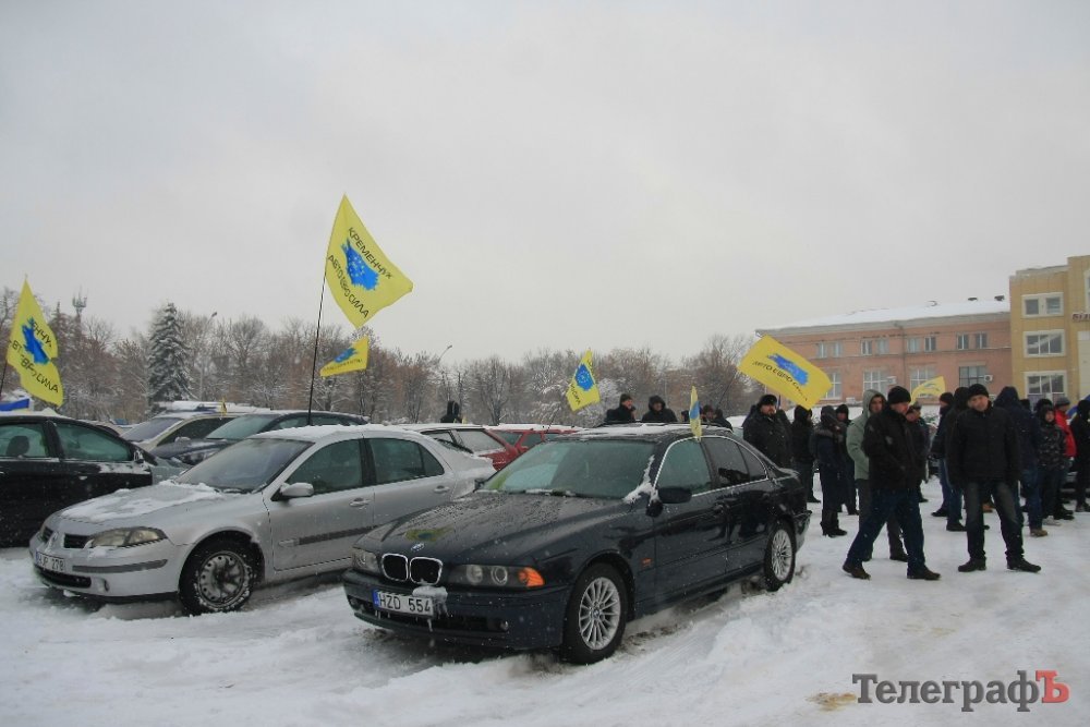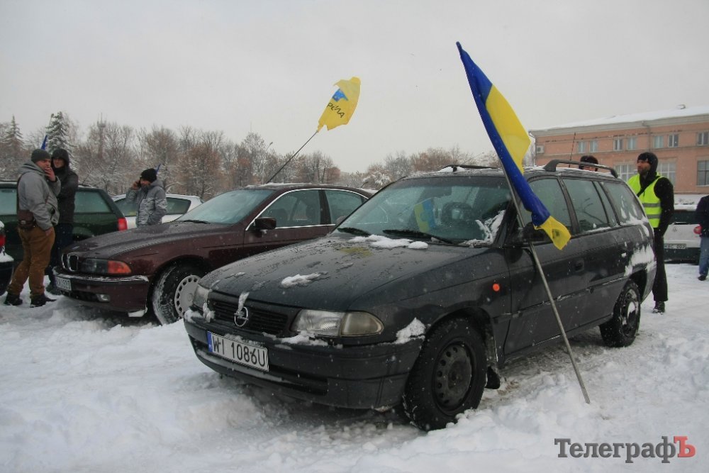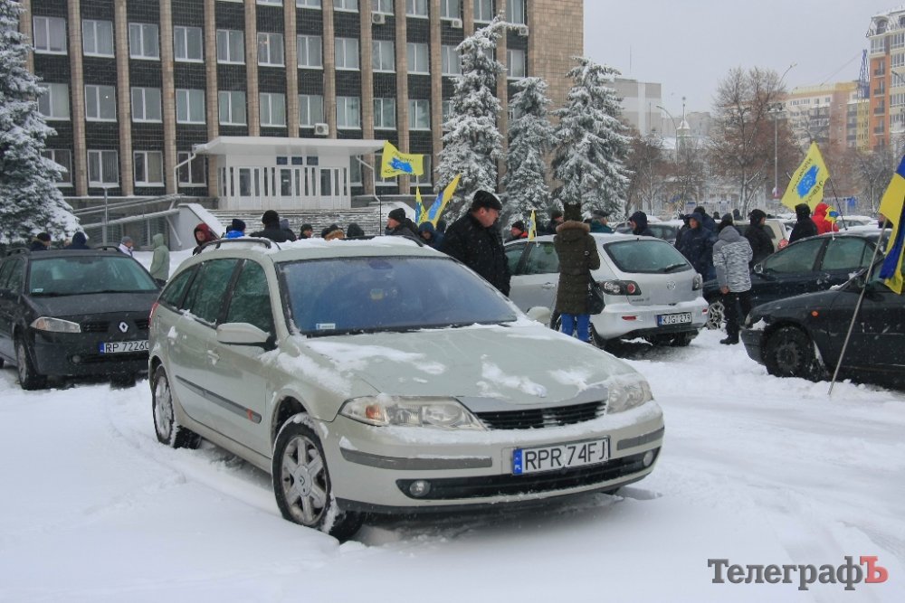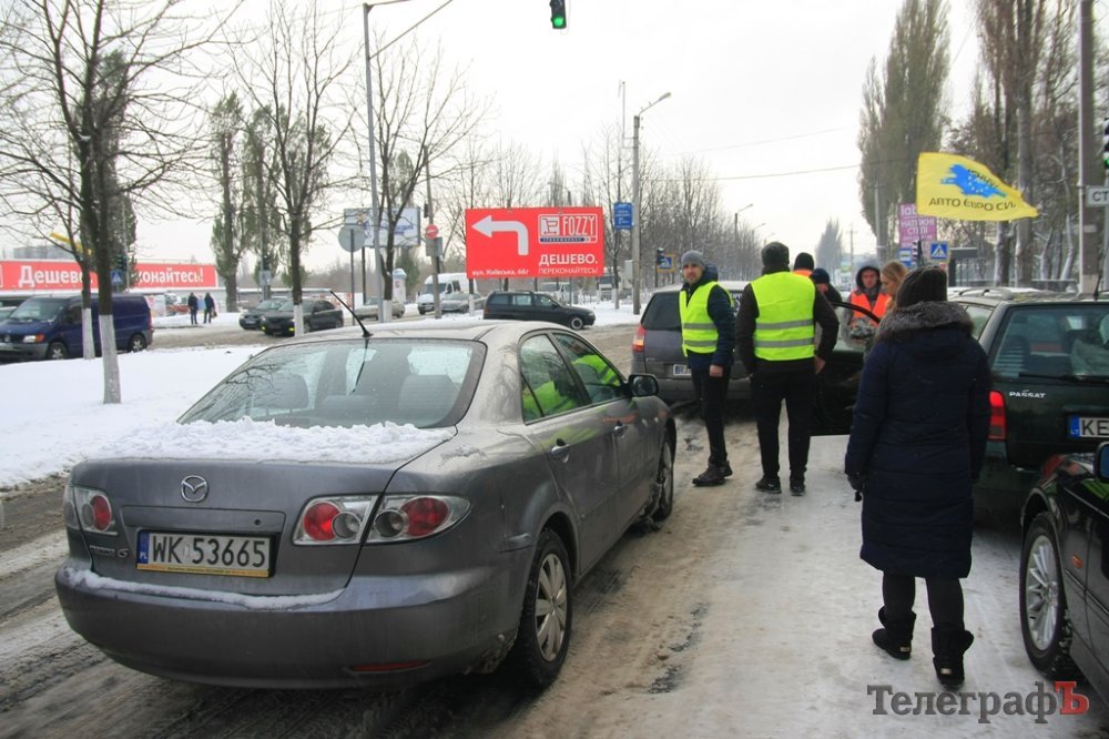 С 10.00 в Кременчуге затруднено движение по ул. Киевской – бастуют владельцы «евроблях». Перекрыт участок от ул. 40-летия ГАИ до поворота на Новую линию в обе стороны. Первая полоса перекрыта полностью. во второй тоже стоят машины, третья – пустая.