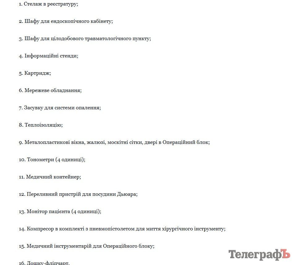 Кроме того, больница приобрела такую медтехнику: кислородный концентратор, аквадистиллятор, носилки (4), офтальмоскоп, щелевую лампу, портативные электрокардиографы (2), эндоскопическую видеосистему, электрокоагулятор, хирургическую стойку, хирургический биполярный инструментарий. Все эти покупки представлены в красочном отчете на странице в Фейсбук. Ни под одной единицей товара не указана его стоимость – соответственно, невозможно проверить, исходя из данных больничного отчета, сколько на эту медтехнику ушло благотворительных взносов.