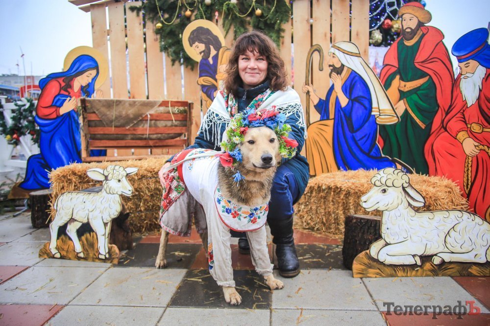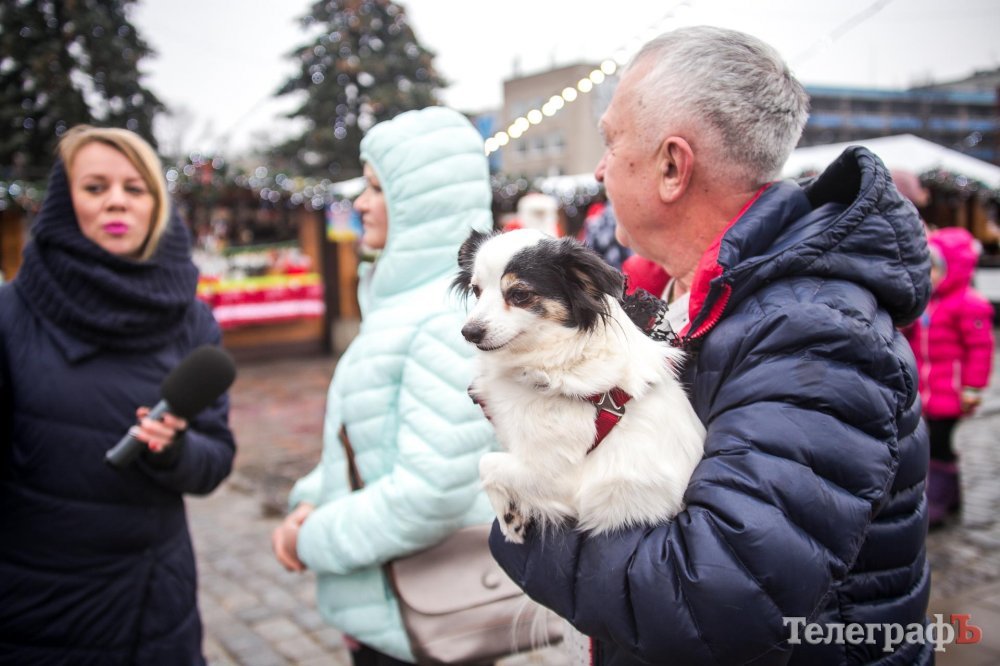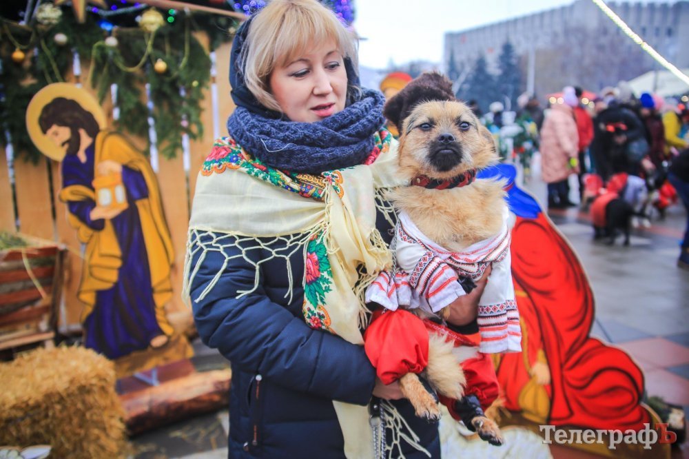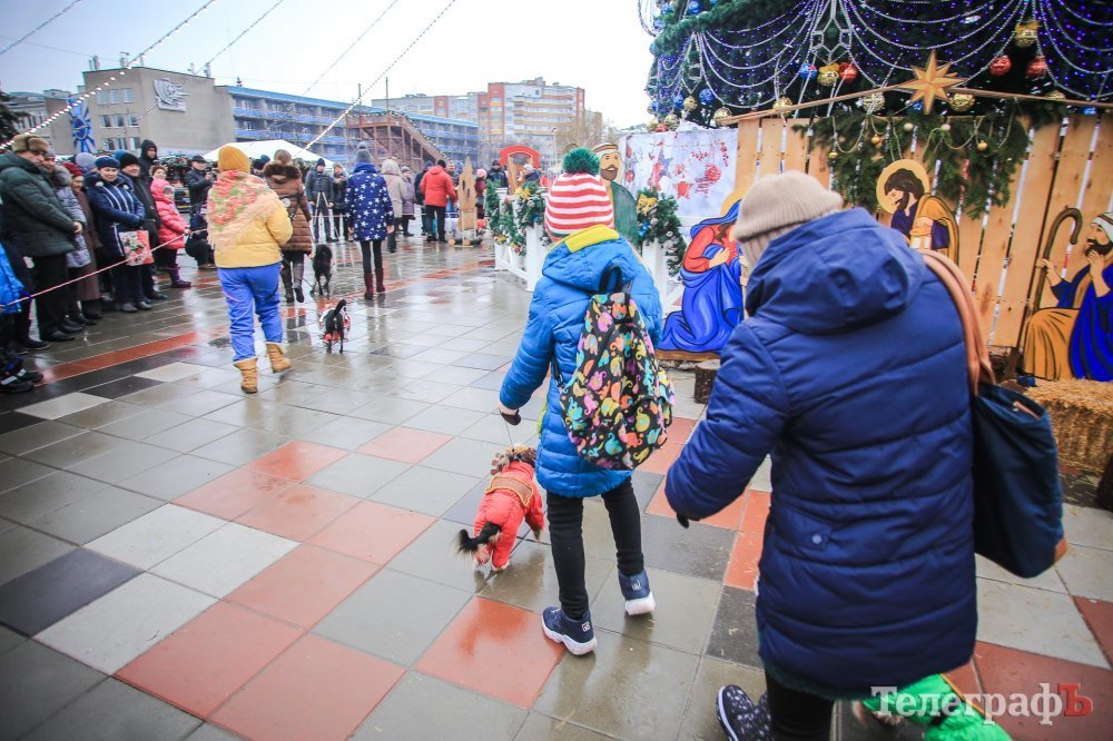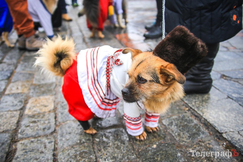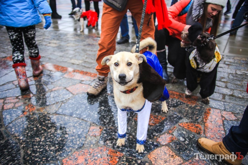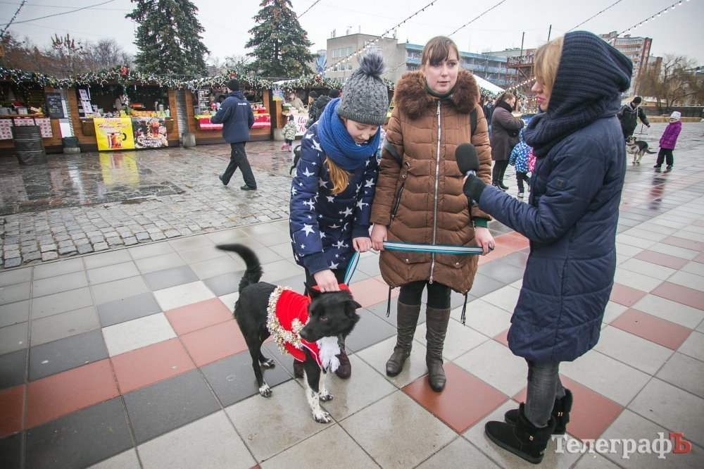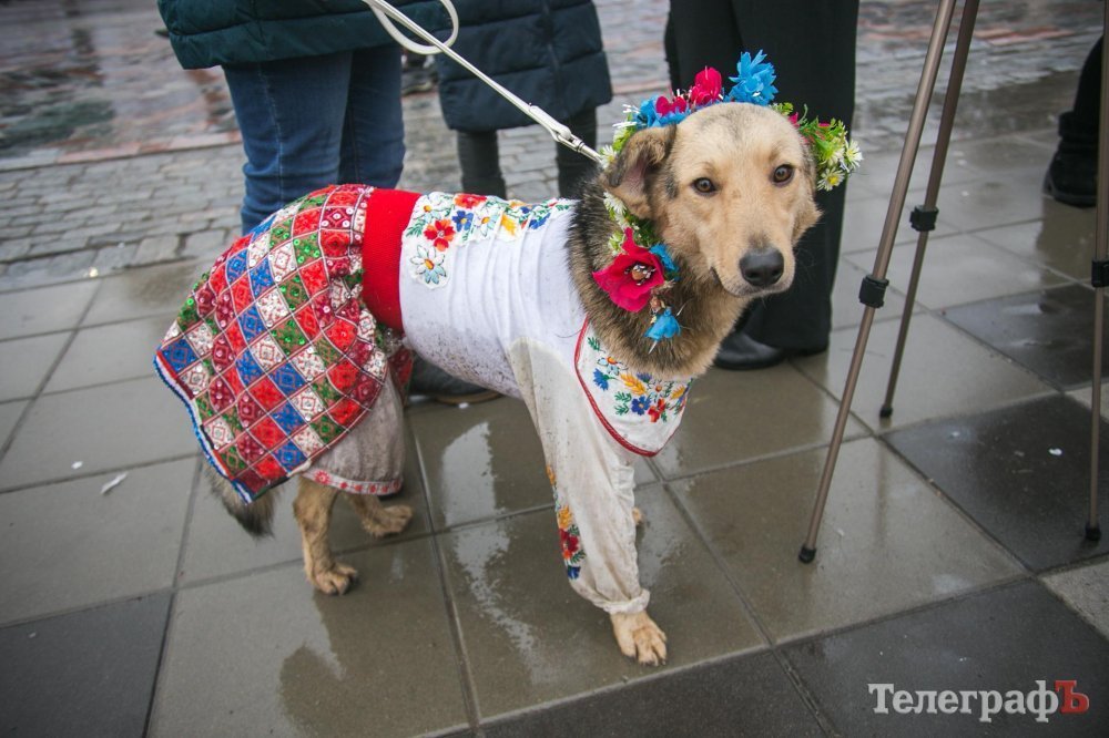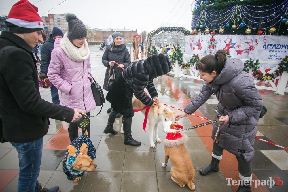 Кременчужане под главной ёлкой города сегодня провожали год Собаки – домашние и бездомные символы уходящего года приоделись в костюмы. Больше всего было Санта Клаусов и веселых оленей.