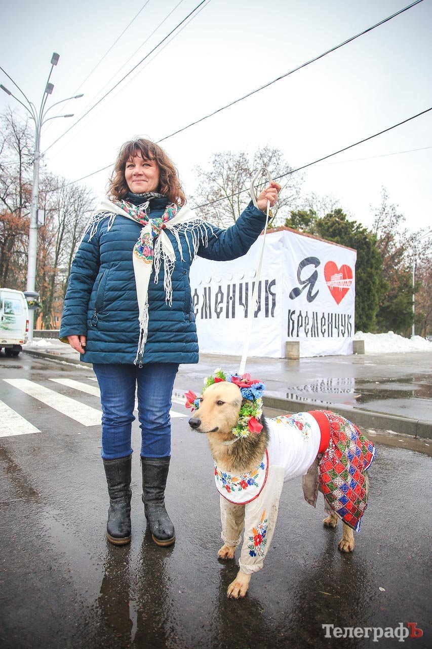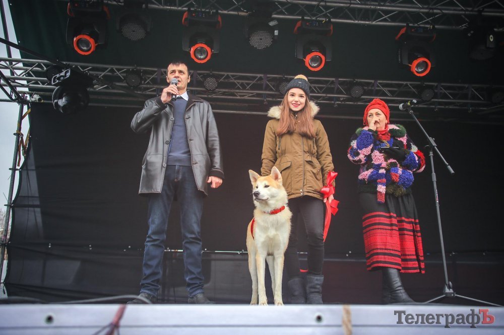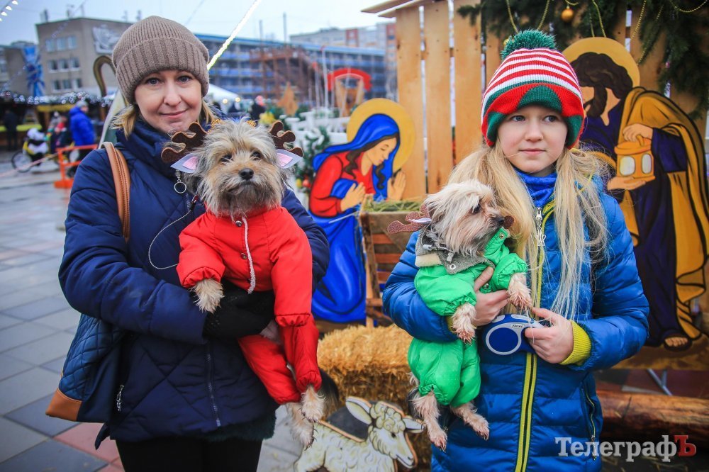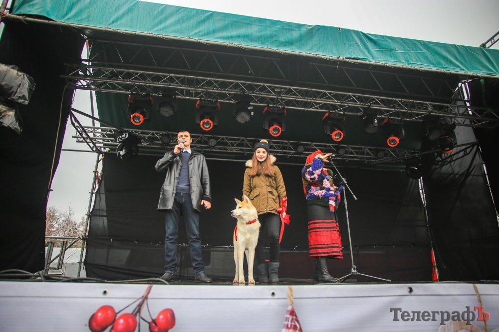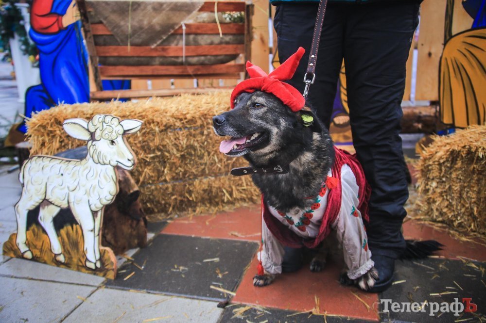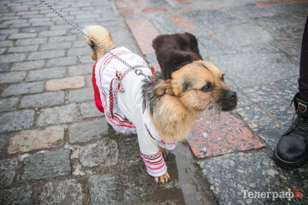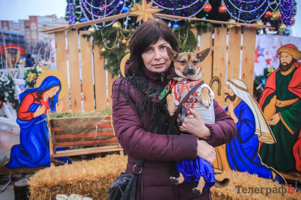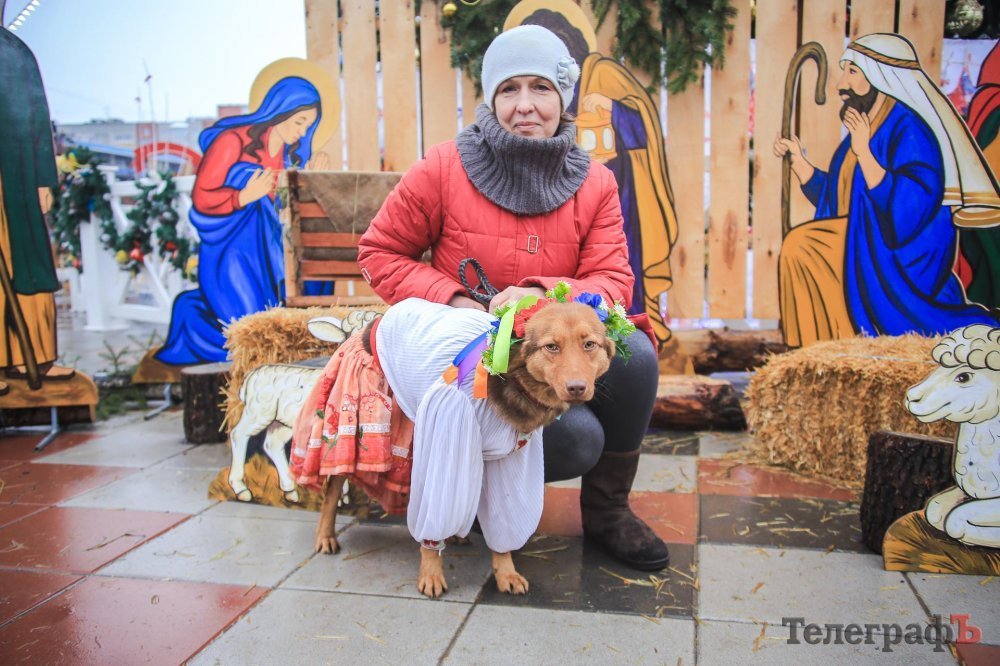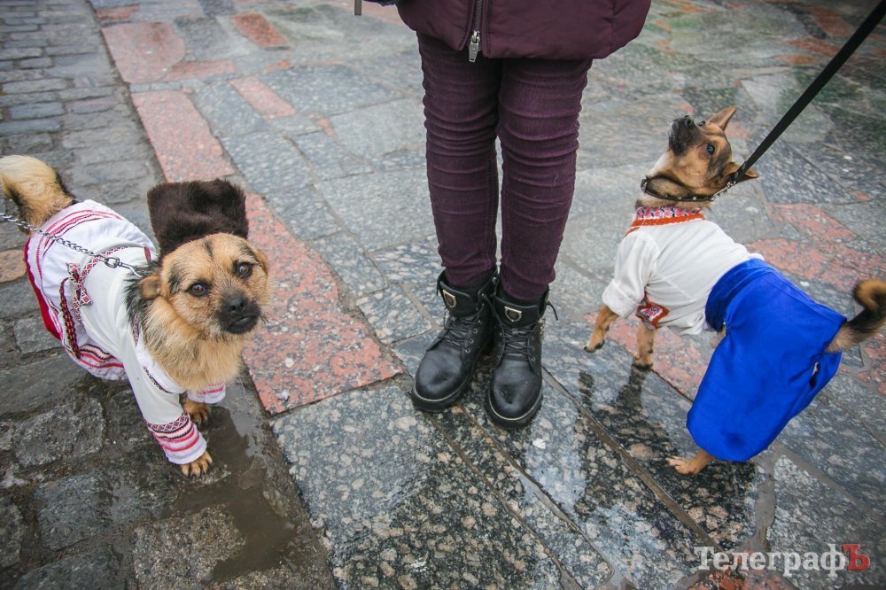 Кременчужане под главной ёлкой города сегодня провожали год Собаки – домашние и бездомные символы уходящего года приоделись в костюмы. Больше всего было Санта Клаусов и веселых оленей.