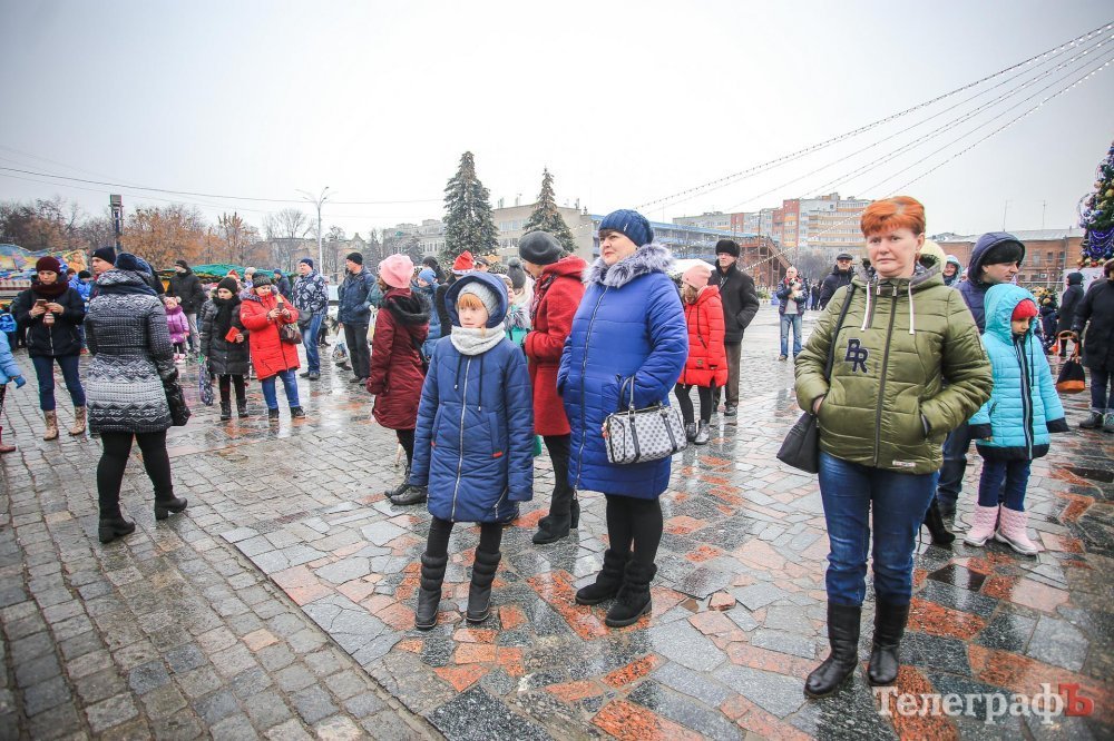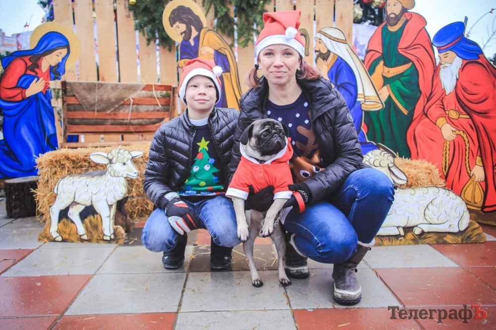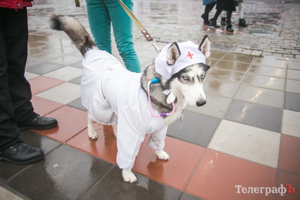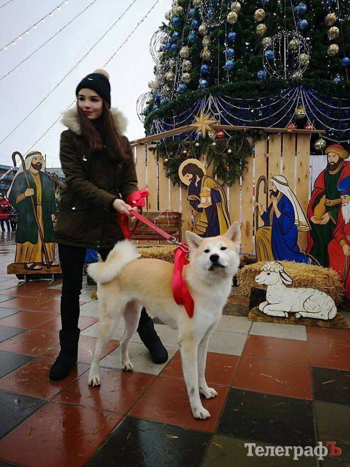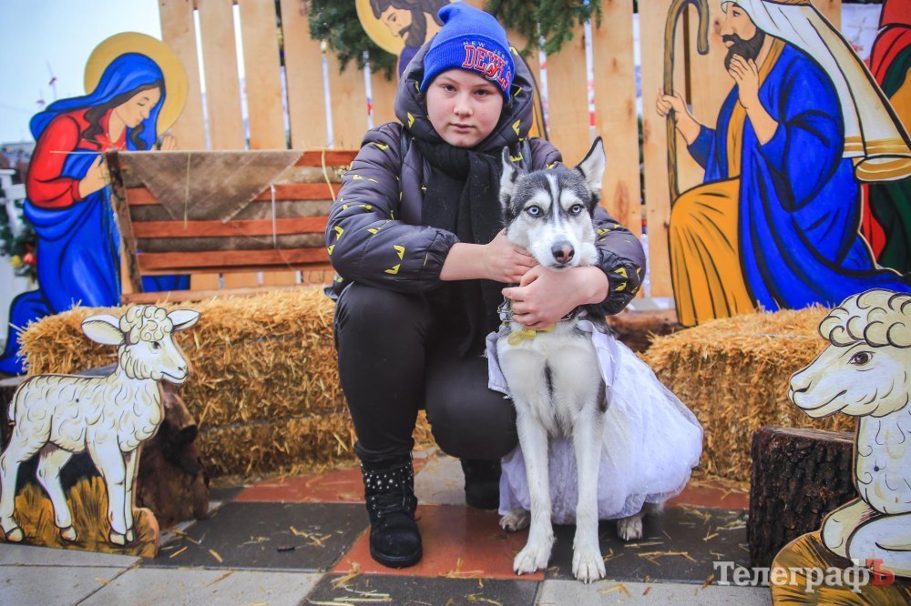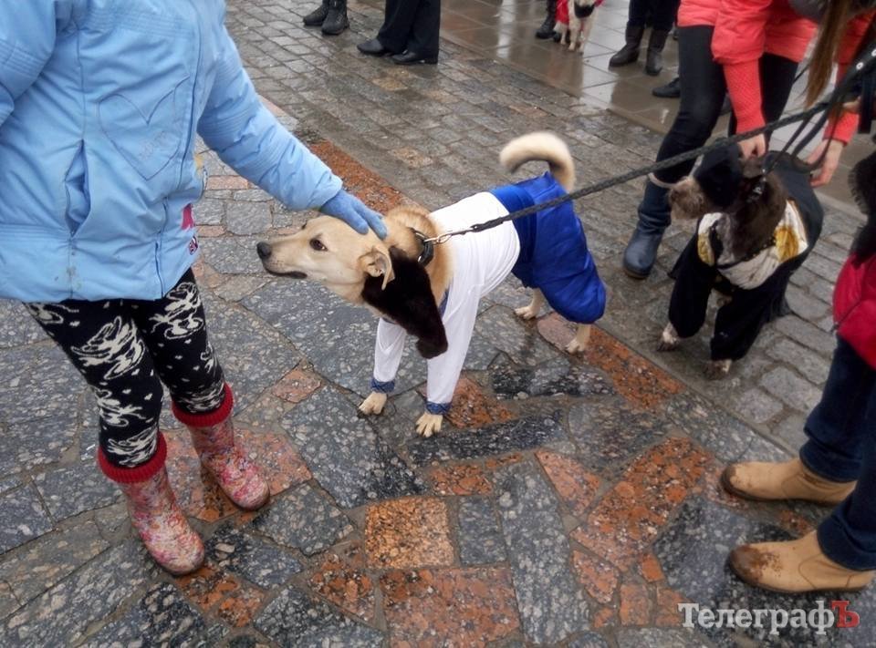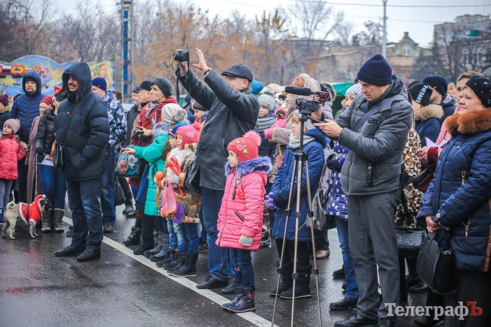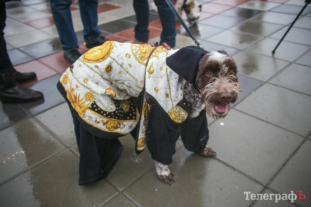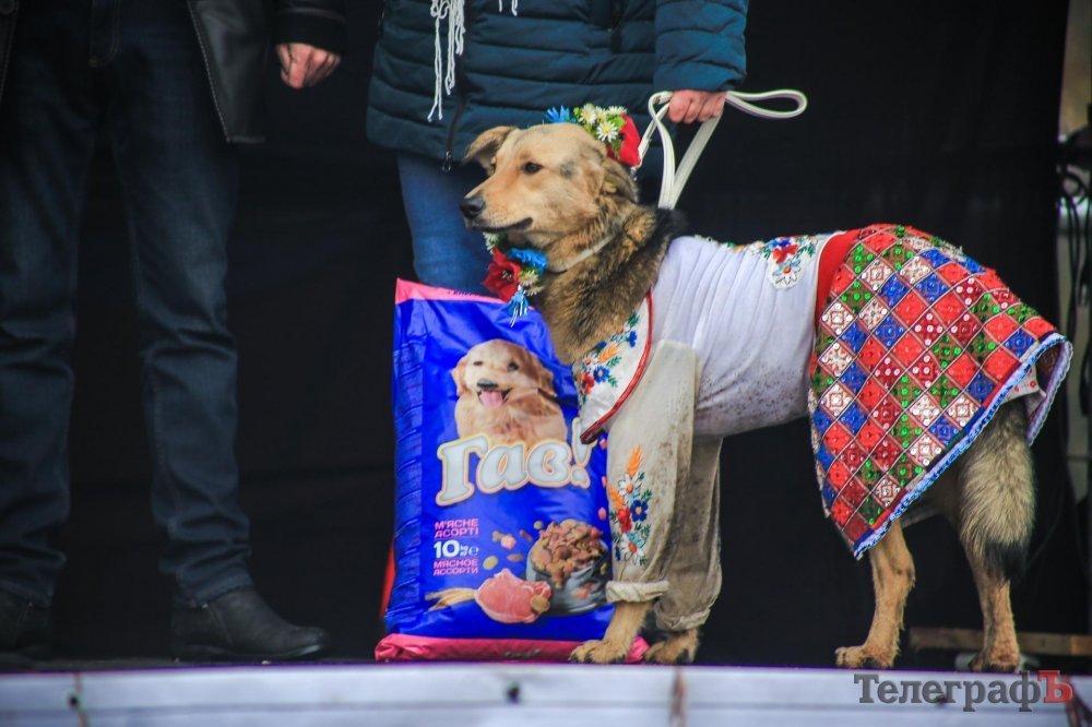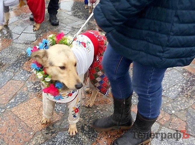 Кременчужане под главной ёлкой города сегодня провожали год Собаки – домашние и бездомные символы уходящего года приоделись в костюмы. Больше всего было Санта Клаусов и веселых оленей.