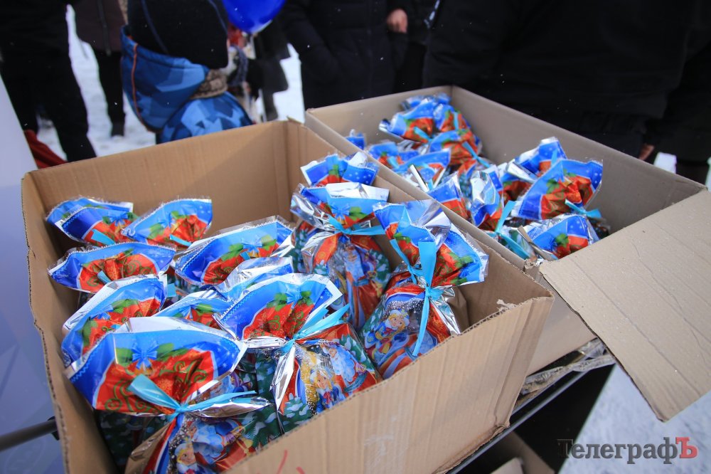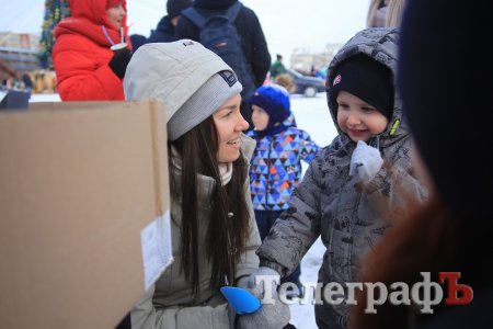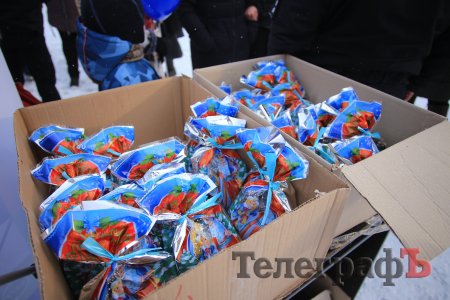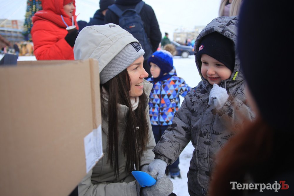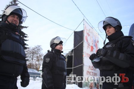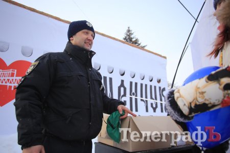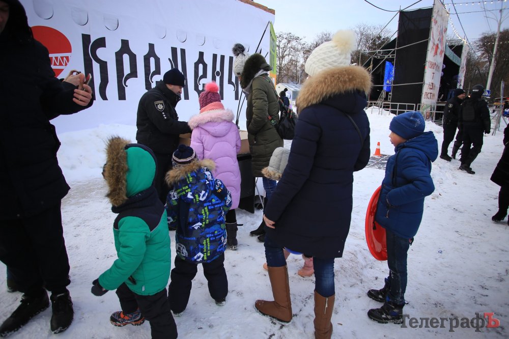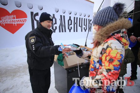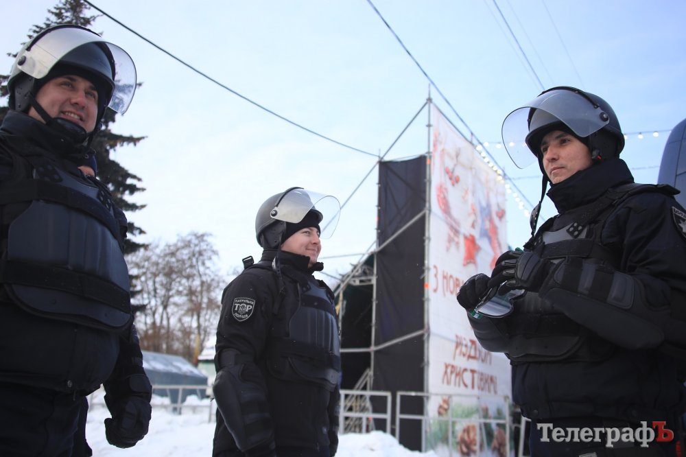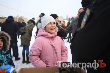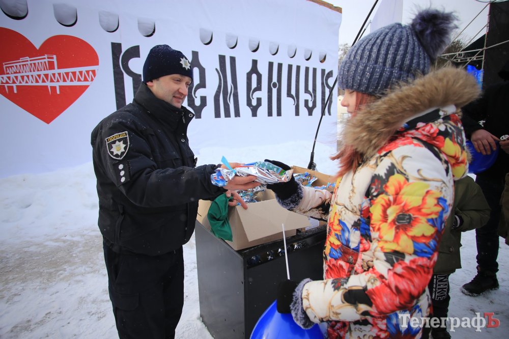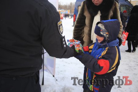 За колядки копы раздавали кременчужанам сладкие подарки и сувениры с символикой.