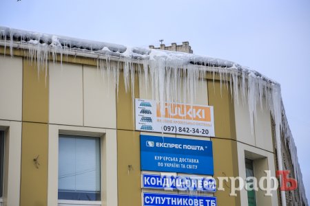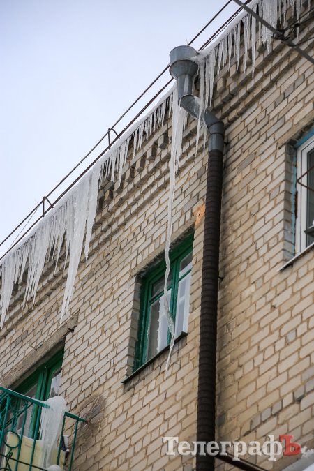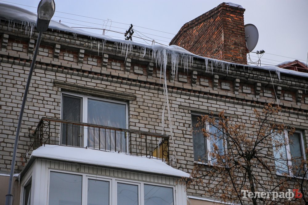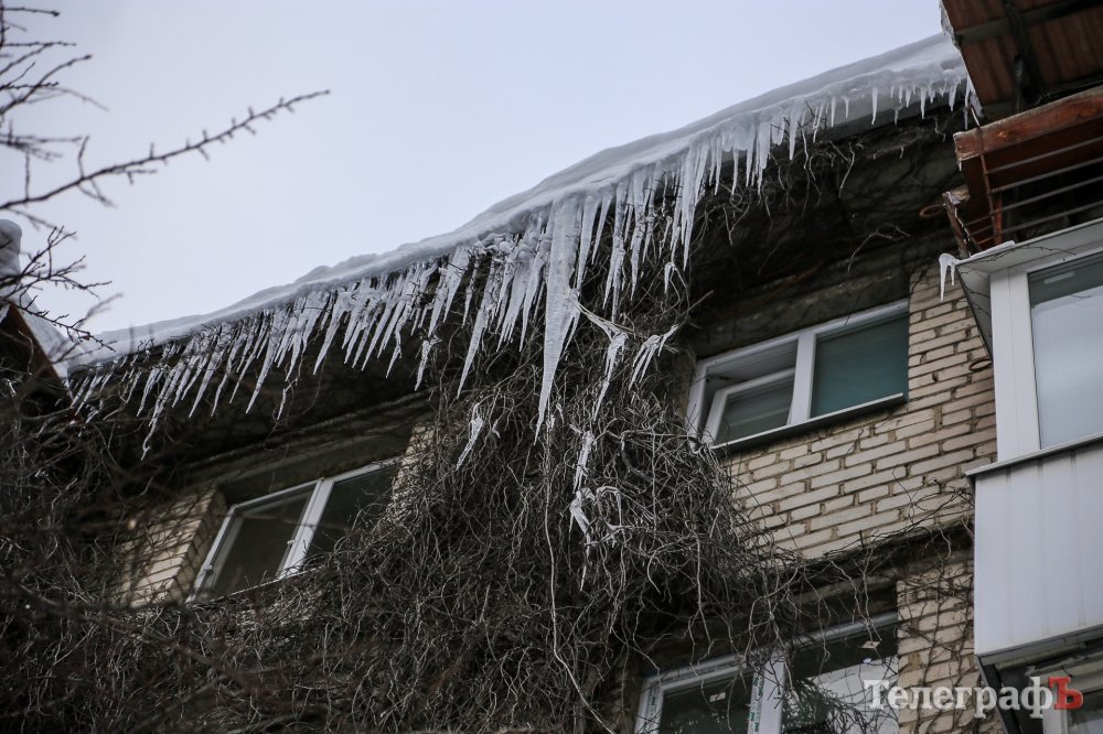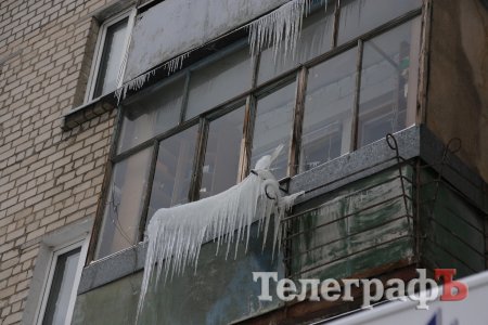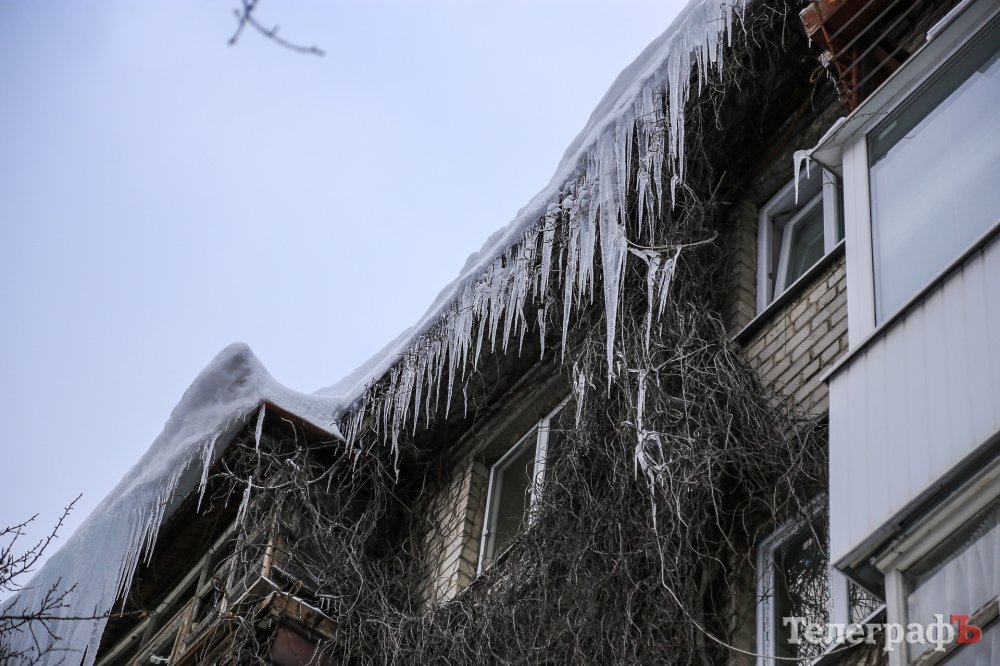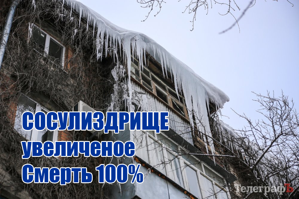 В Кременчуге с утра плюсовая температура и сосульки начали активно размножаться, расти, таять, падать. Будьте осторожны, выходя на улицу – опасность может поджидать вас прямо у подъезда дома. Старайтесь не ходить у стен строений. Некоторые из них украшены красными предупреждающими ленточками, но они не уберегут вас от прямого попадания в голову.