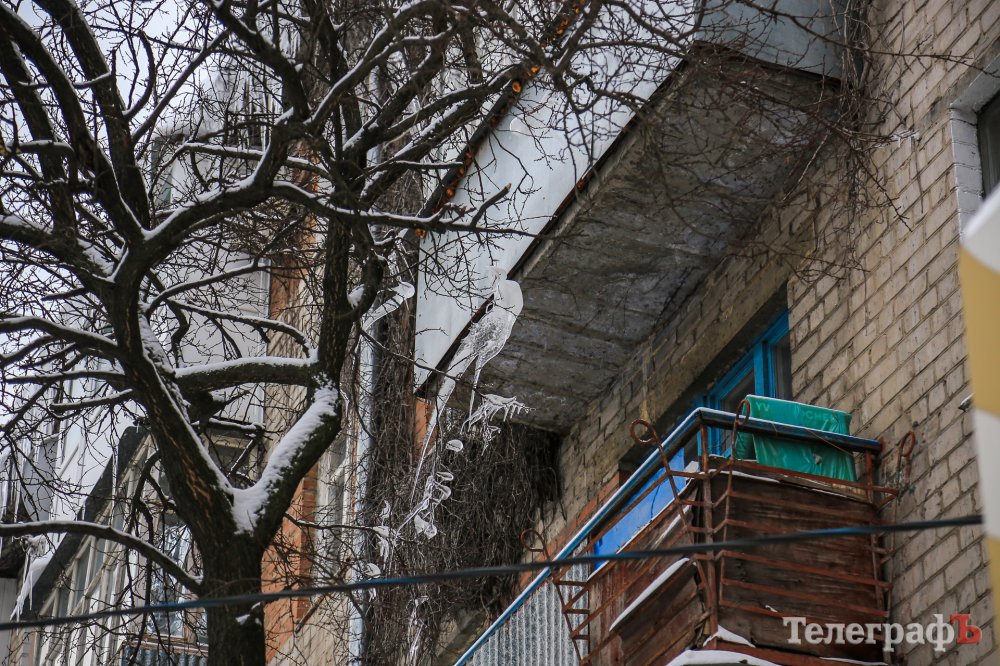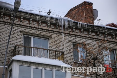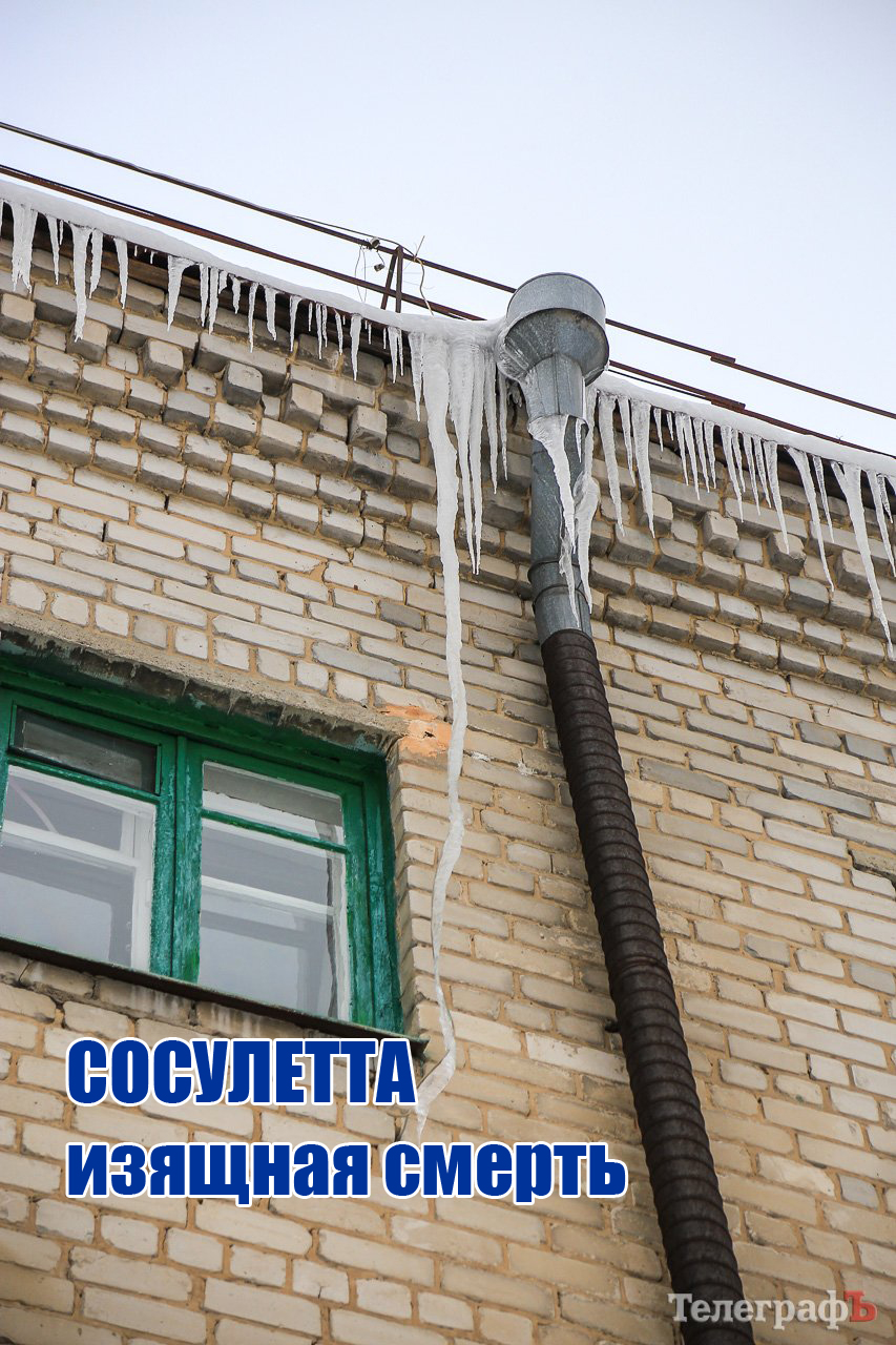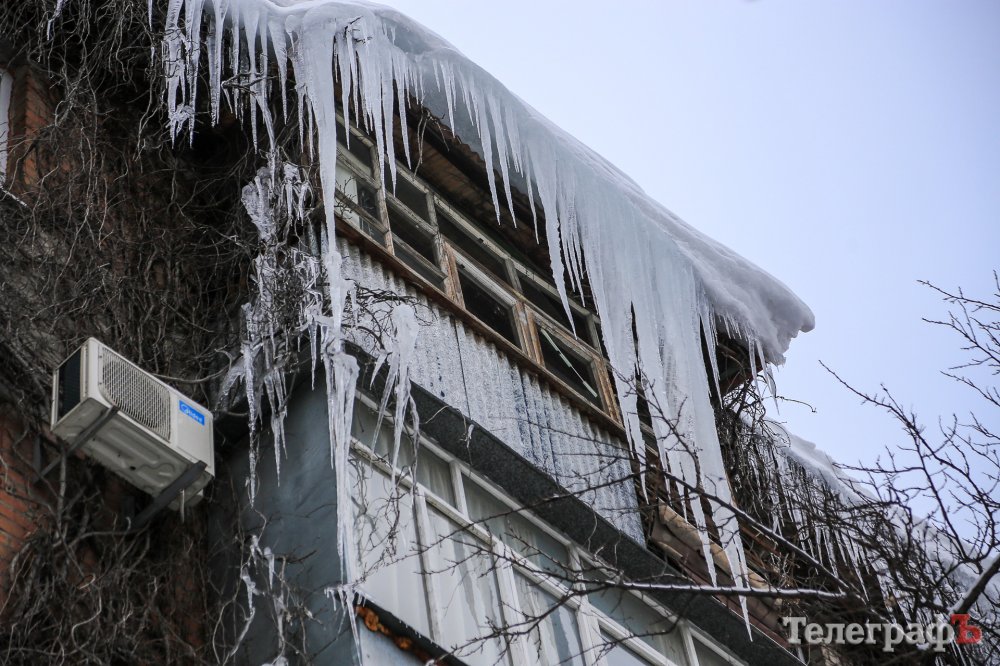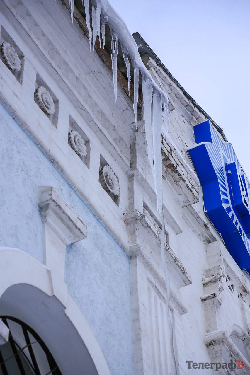 В Кременчуге с утра плюсовая температура и сосульки начали активно размножаться, расти, таять, падать. Будьте осторожны, выходя на улицу – опасность может поджидать вас прямо у подъезда дома. Старайтесь не ходить у стен строений. Некоторые из них украшены красными предупреждающими ленточками, но они не уберегут вас от прямого попадания в голову.