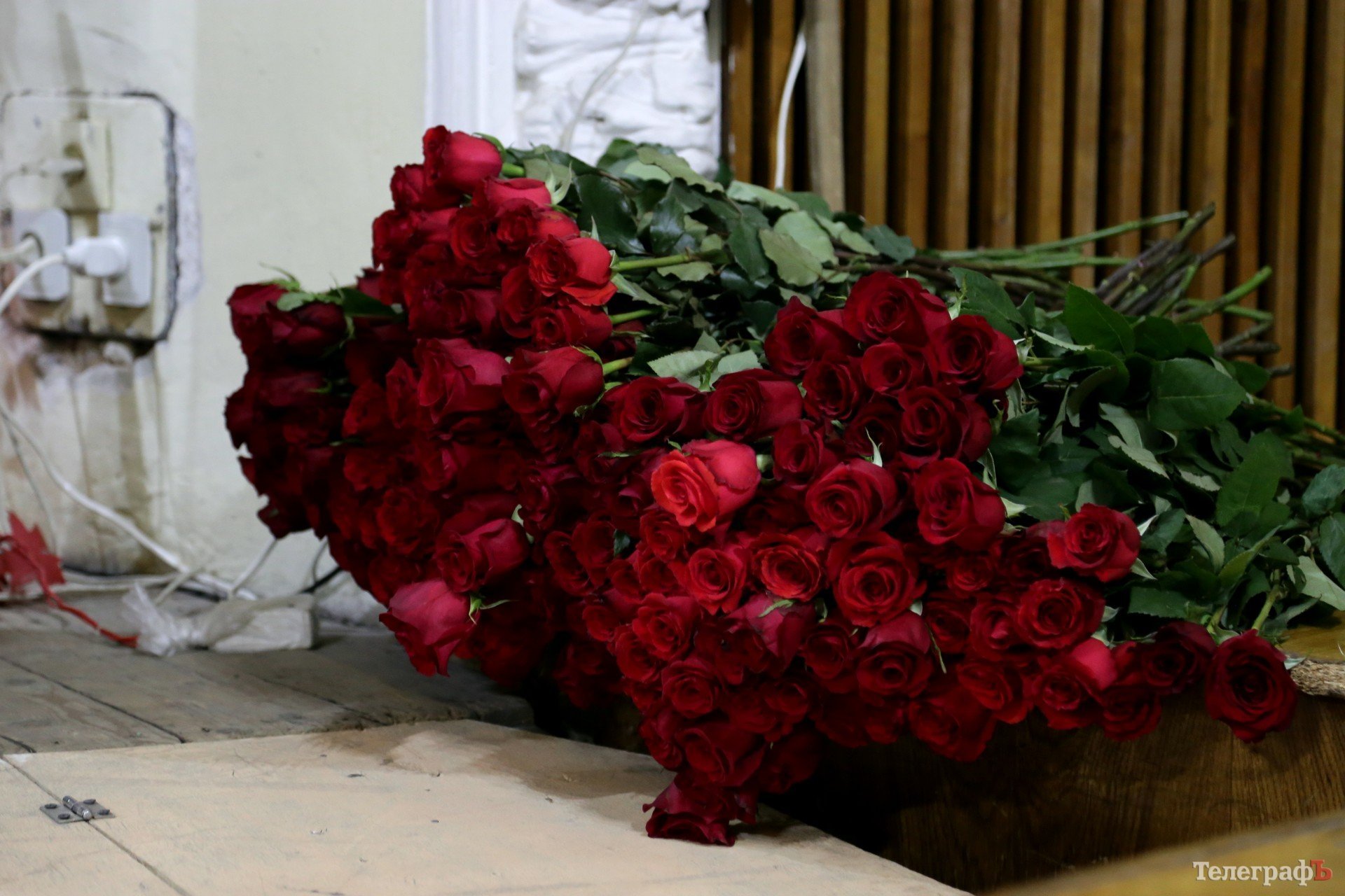 Пока Ляшко рассказывал об ужасной смертной казни для коррупционеров, эта гора роз лежала в углу сцены. Никто из радикалов не признался «Телеграфу», кто заплатил за цветы – кременчужане или Ляшко?