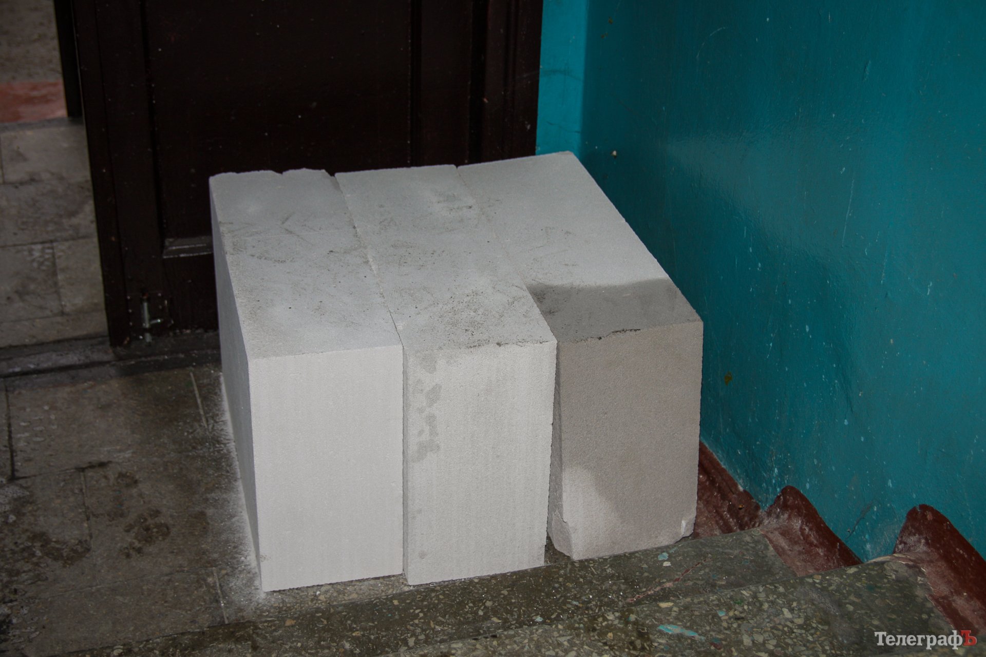 У коридорі між входом до будинку та сходами лежать блоки. Олександр та Сергій пояснили, що за допомогою них хочуть збудувати стіну.