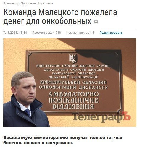 – Нічого собі «просто некоректно трактується»! Але в онкодиспансер з управління був спрямований офіційний перелік саме з п’яти онконозологій, за якими пацієнт має право на безкоштовну хімію! І лікарям роз’яснили, що вони можуть направляти на бесплатну хімію лише пацієнтів з цього переліку! Ми коментарі у цих лікарів отримували. Нам конкретні пацієнти скаржились, що їм відмовили у хімії через те, що їхньої хвороби немає у пільговому переліку!