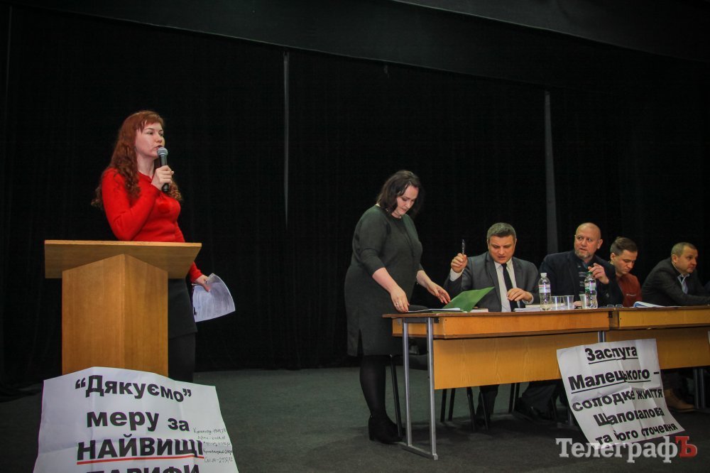 Оксана Піддубна оголосила, що слухання незаконні, оскільки 21 лютого міська рада ухвалила рішення про мораторій на підвищення тарифів. Натомість захід відбувається всупереч мораторію.