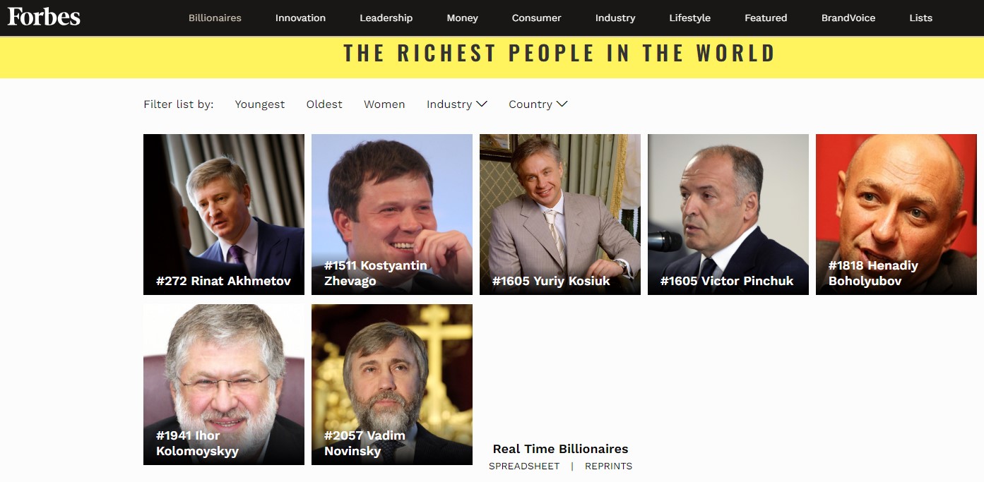 Издание считает, что в Украине лишь 7 человек имеют статус долларовых миллиардеров.