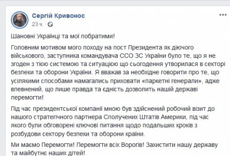 7-го марта Центризбирком аннулировал регистрацию Сергея Кривоноса (Постановление № 496 от 07.03.2019). Сергей Кривонос написал на своей странице в Фейсбук пост о том, что им принято сложное решение о снятии своей кандидатуры. Он не указал, почему принял такое решение и что ему предложили за такое решение.