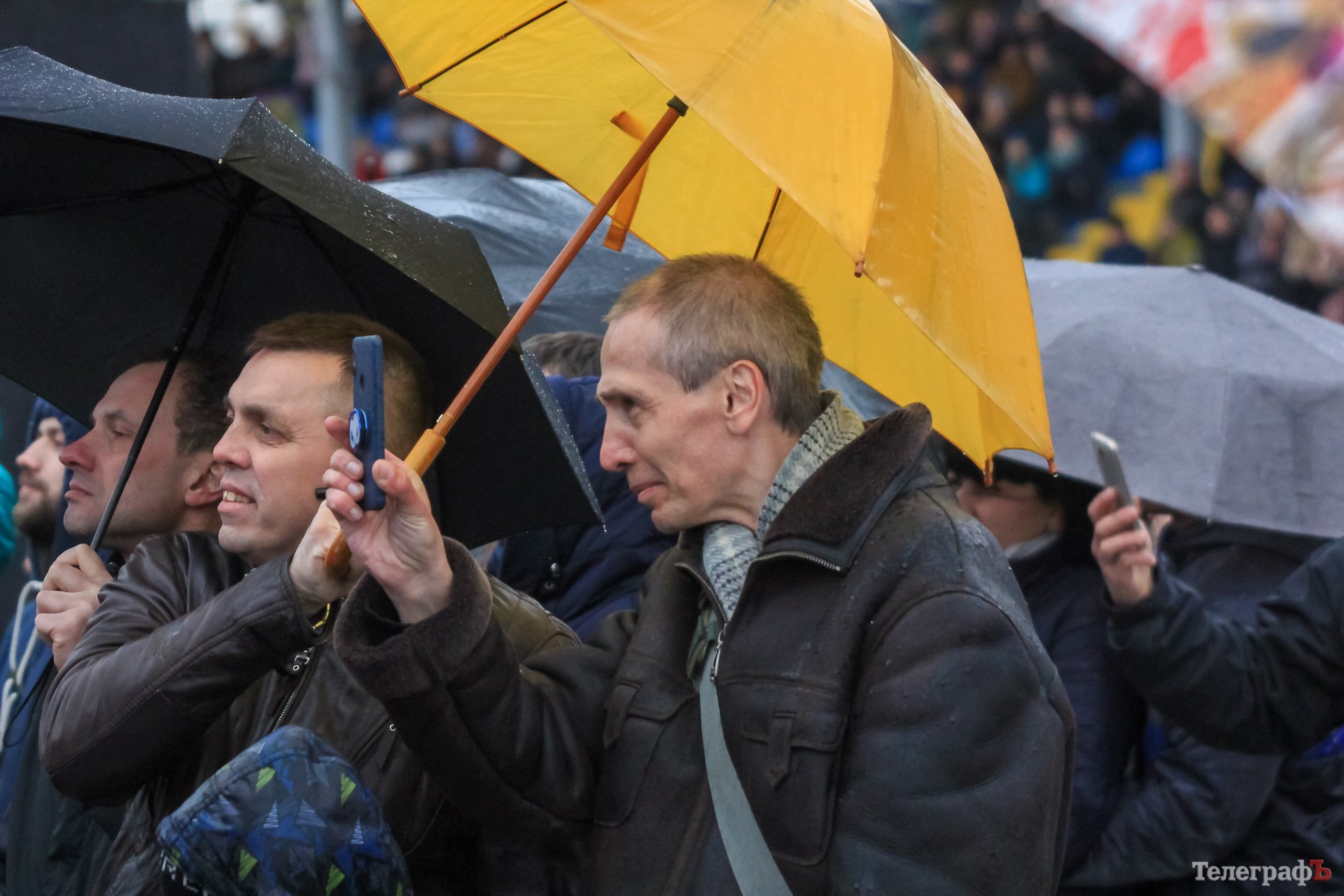 Было очень холодно и шел дождь. Концерт начался не в 16 часов, а в 17. «ТелеграфЪ» реально обрадовался появлению Зеленского на сцене, потому что это означало, что концерт начинается, и не придется и дальше ждать звезду под дождем. Зрители встретили Зеленского бурными аплодисментами.