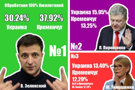 По результатам обработки 100% бюллетеней в Кременчуге (146-й округ), тройка лидеров президентской гонки в нашем городе выглядит следующим образом: