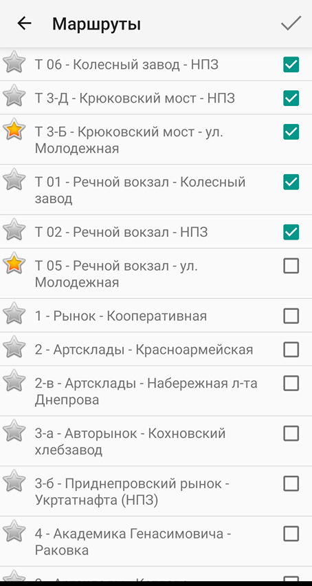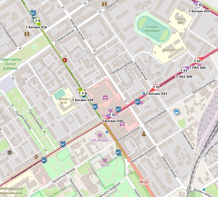 На мапі додатку тролейбуси відображаються із позначкою «Т».