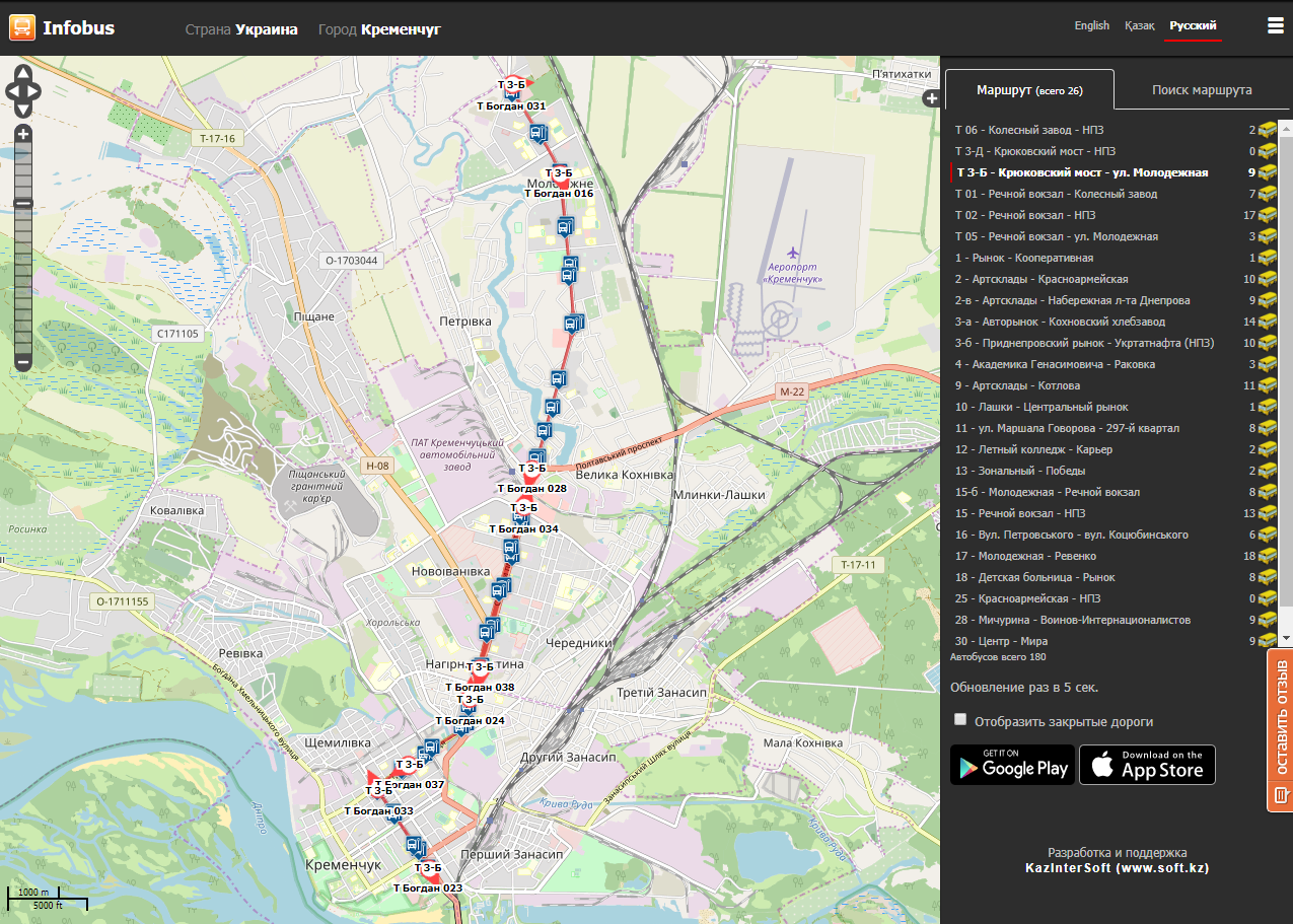 Кременчук у Infobus з’явився взимку 2017 року – додаток показував приблизно 50% маршруток, у яких були встановлені GPS-датчики.