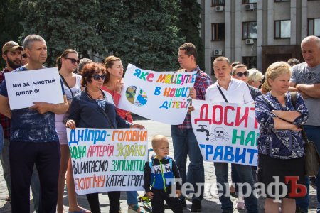 Сьогодні зранку, 29 червня, рибалки прийшли під стіни мерії Кременчука. Кременчужани вимагають звернути увагу на якість води.
