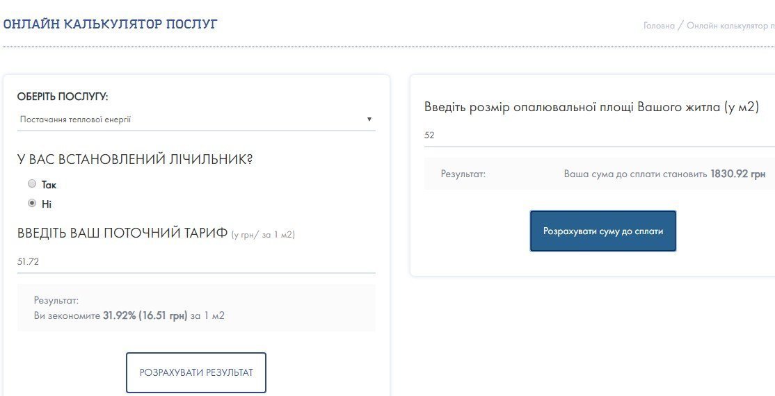 На сайті Кабміну і Мінюсту з’явився онлайн-калькулятор розрахунку платіжки за тепло та гарячу воду. Представляючи нововведення, прес-служба Мінюсту використовує вираз «чесна платіжка». Як зазначив міністр юстиції Павло Петренко, скориставшись калькулятором, можна дізнатися, «чи справедливою є вартість тепла та гарячої води у кожному з регіонів».