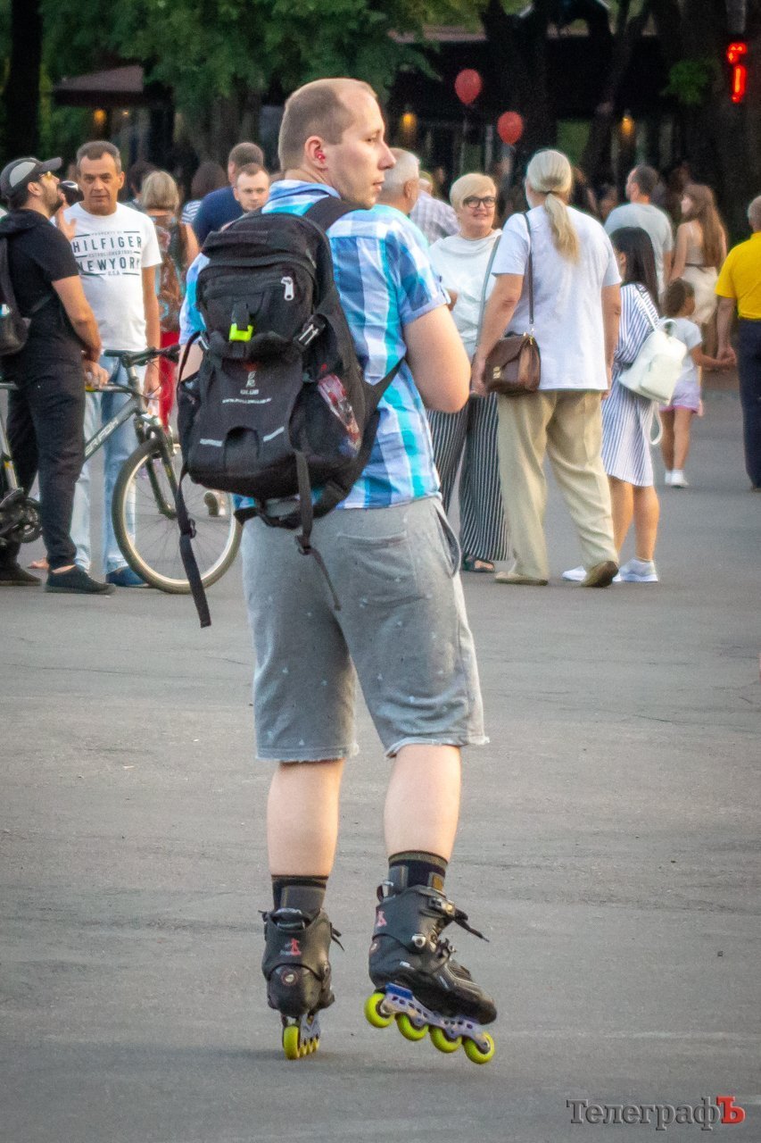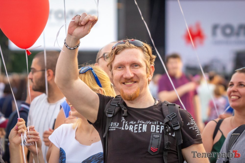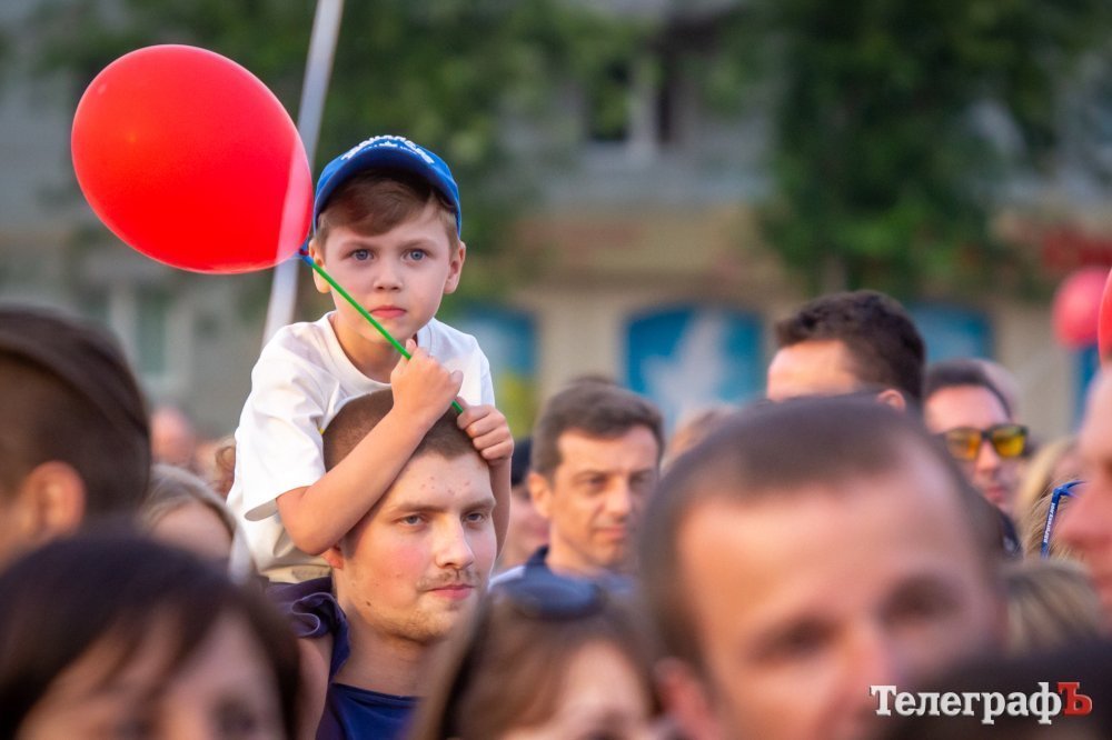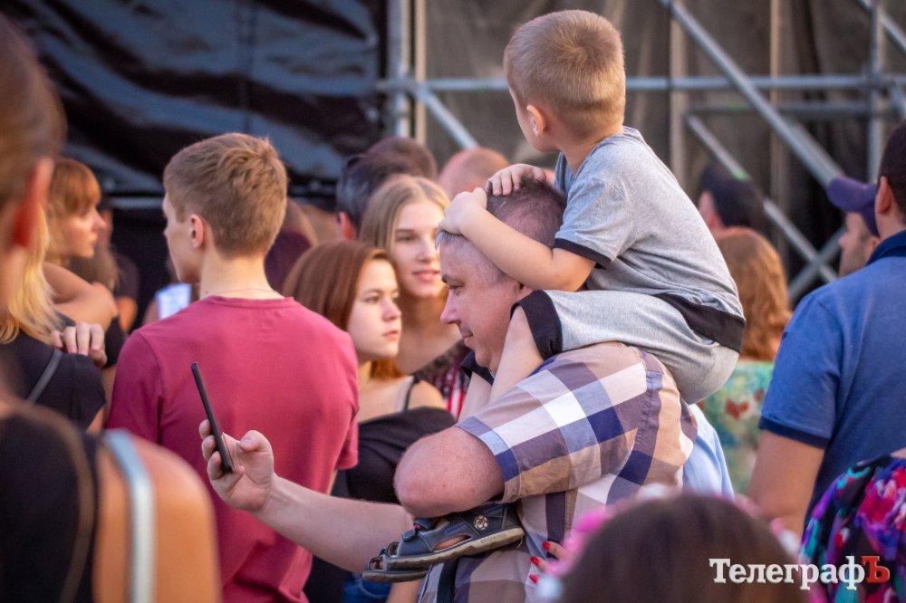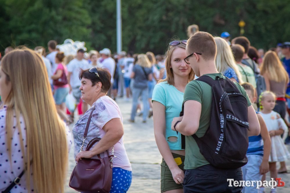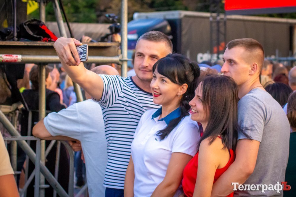 На площади Победы в Кременчуге начинается бесплатный концерт «Океана Эльзы». На площади собралось несколько тысяч кременчужан, возможно, десятков тысяч. Все боковые улицы (Коцюбинского, Победы), ведущие к площади Победы, забиты людьми, идущими на концерт.
