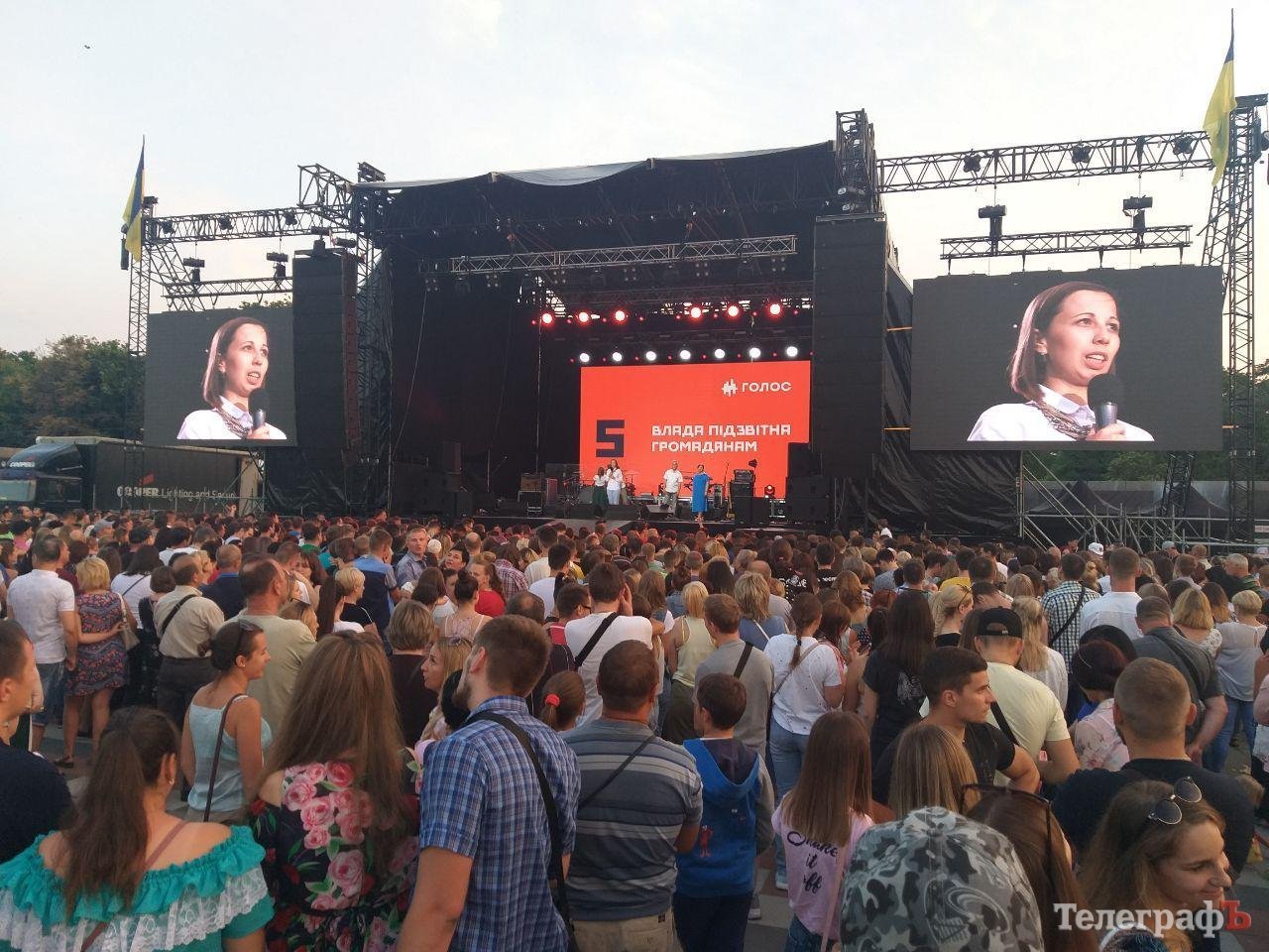 Пока шла политическая часть концерта – на сцене представляли команду «Голоса» и кандидатов по Кременчугу – зрители общались между собой и выбирали удачные места. Когда начался собственно концерт «Океана Эльзы», публика уже смотрела исключительно на сцену.