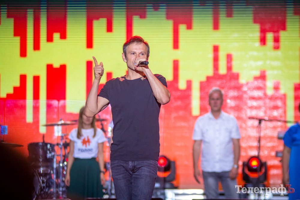 В Кременчуге Вакарчук тоже перед концертом представил кременчужанам команду «Голоса». В первую очередь, это официальный кандидат от «Голоса» по 146-му Кременчугскому округу – Ростислав Зауральский.