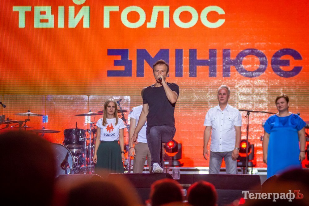 Начало концерта назначено на 20 часов, но перед выступлением «Океана Эльзы» лидер группы Святослав Вакарчук представляет кременчужанам команду своей партии «Голос».