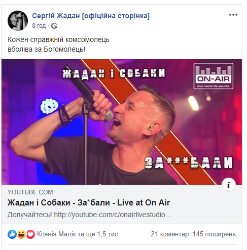 Український поет, прозаїк, перекладач, громадський активіст Сергій Жадан розмістив у соцмережі посилання на пісню гурту «Жадан і Собаки» «За*бали» та написав: