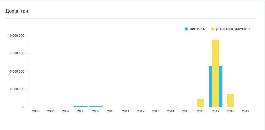 При цьому, якщо ПП «Будівельний двір» ще мало виручку, крім бюджетних замовлень, то її сестра за розумом ТОВ «Фірма «Будівельний двір» заробляє винятково на бюджеті. І в нас склалося враження, що фірма створена спеціально з цією метою. Ось графіки, які побудувала аналітична система YouControl.