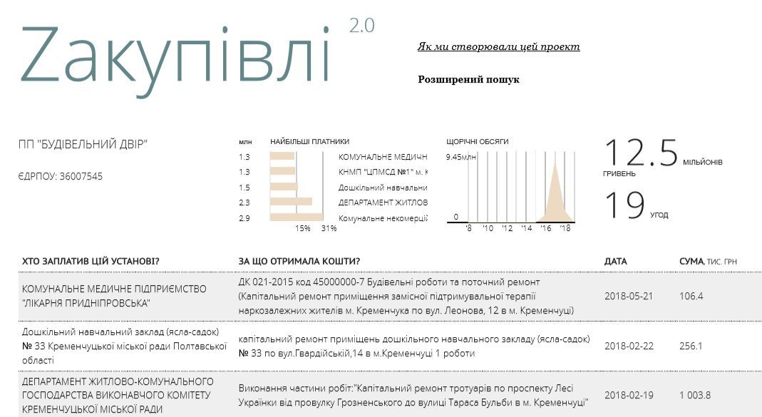 Згодом потік бюджетних замовлень у ПП «Будівельний двір» вичерпався. Натомість контракти щедрою рікою полилися на ТОВ «Фірма «Будівельний двір». У договорах, які укладали обидві фірми, активістка знайшла спільний номер телефону.