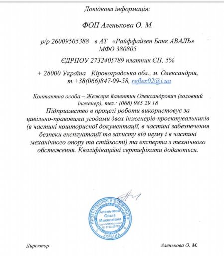 Усього учасників торгів було двоє — конкурентом «Першої української будівельної компанії» виступала ФОП Аленькова Ольга Миколаївна — теж з Кіровоградщини, з міста Олександрія. Обидва учасники не знижували ціну. Крім того, нам здалося дивним, що ФОП береться освоювати майже 3 мільйони гривень на ремонті дороги. Як свідчать дані системи ProZorro, раніше Ольга Миколаївна не мала досвіду ремонту доріг за бюджетні кошти — лише виконувала роботи з інженерного проектування. До речі, за даними аналітичної системи YouControl, ФОП Аленькова має 7 видів діяльності, основний - «Надання інших допоміжних комерційних послуг», а от такого виду діяльності, як «Будівництво доріг та автострад» у неї немає, і взагалі немає ніякого виду діяльності, пов'язаного з будівництвом.